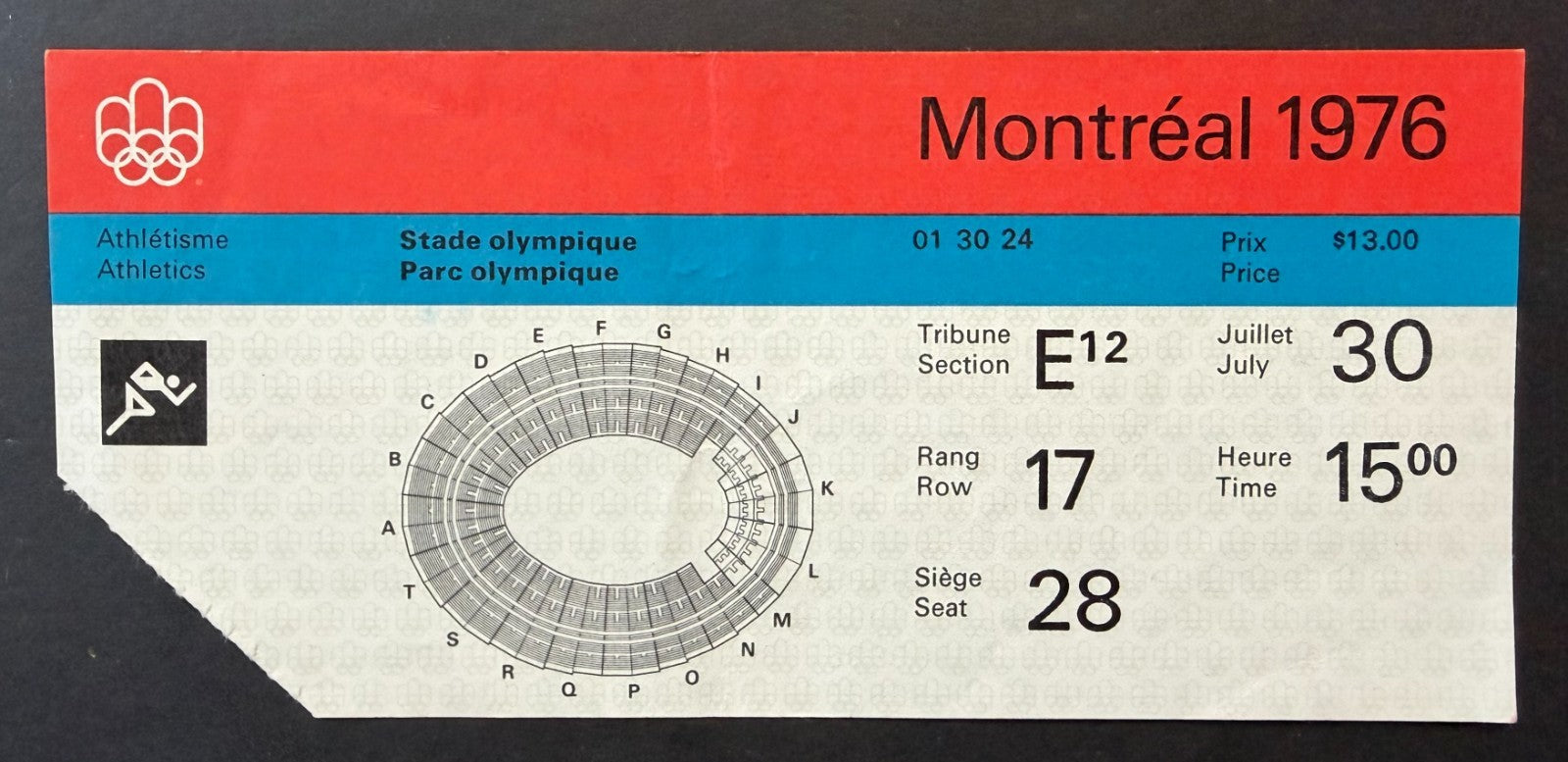 - July 30th, 1976 Montreal Summer Olympics ticket