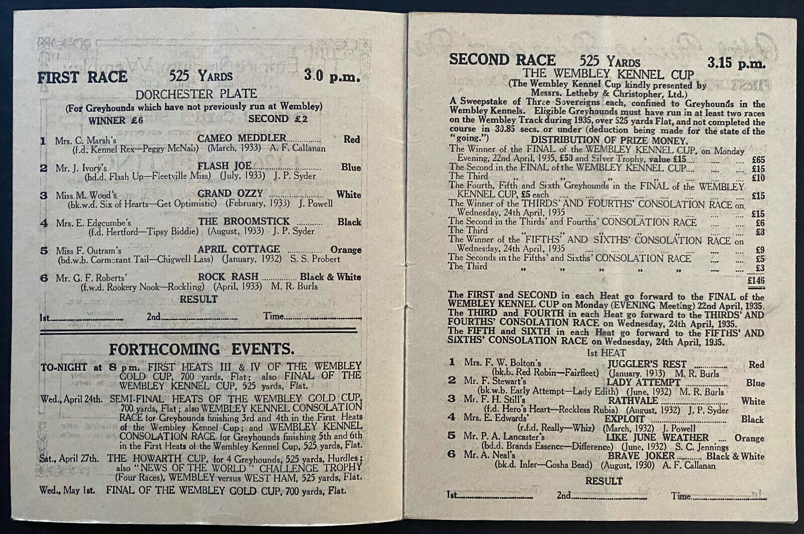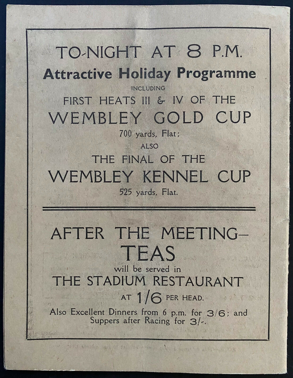 - 1935 British Greyhound Racing Program Empire Stadium Wembley