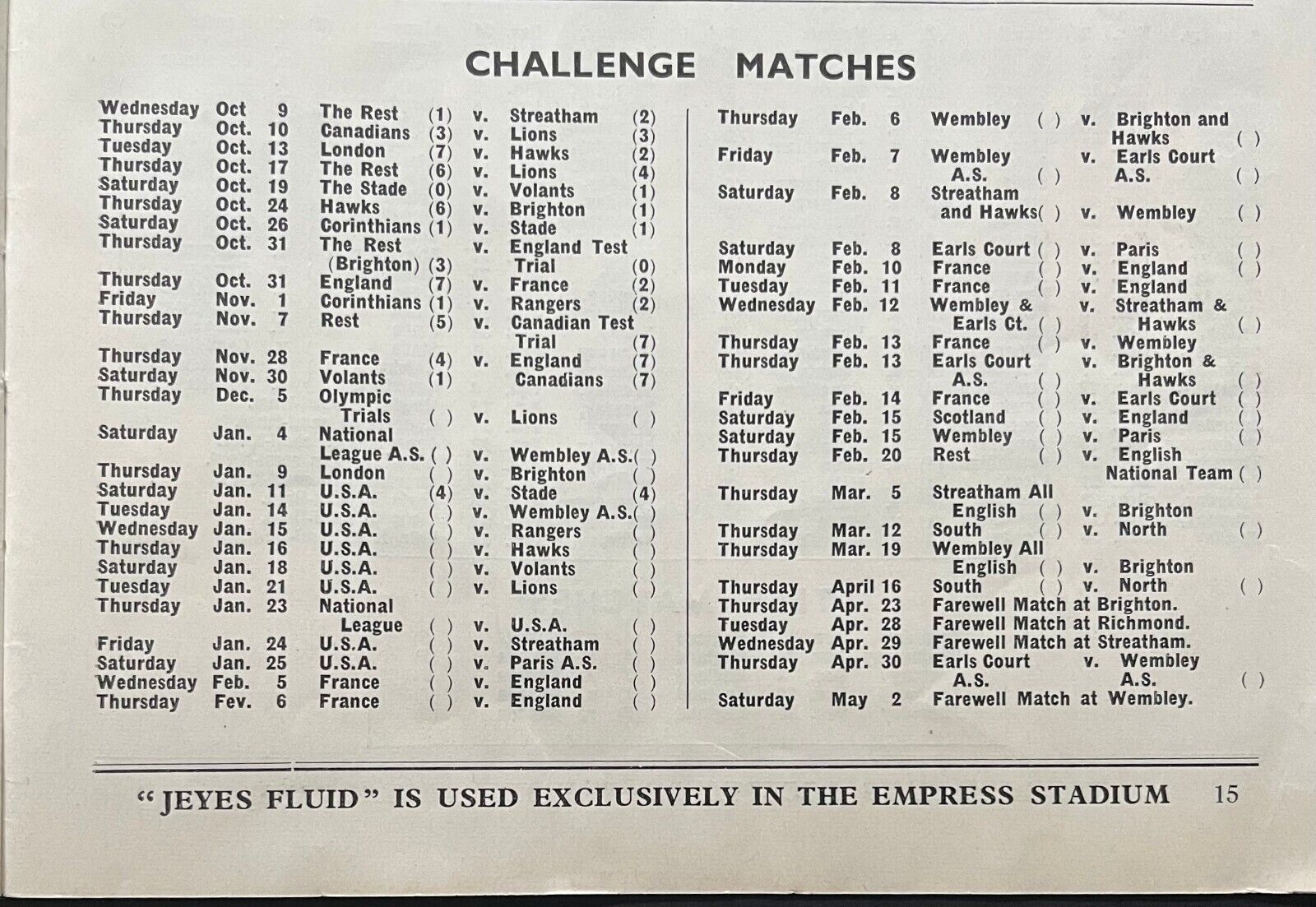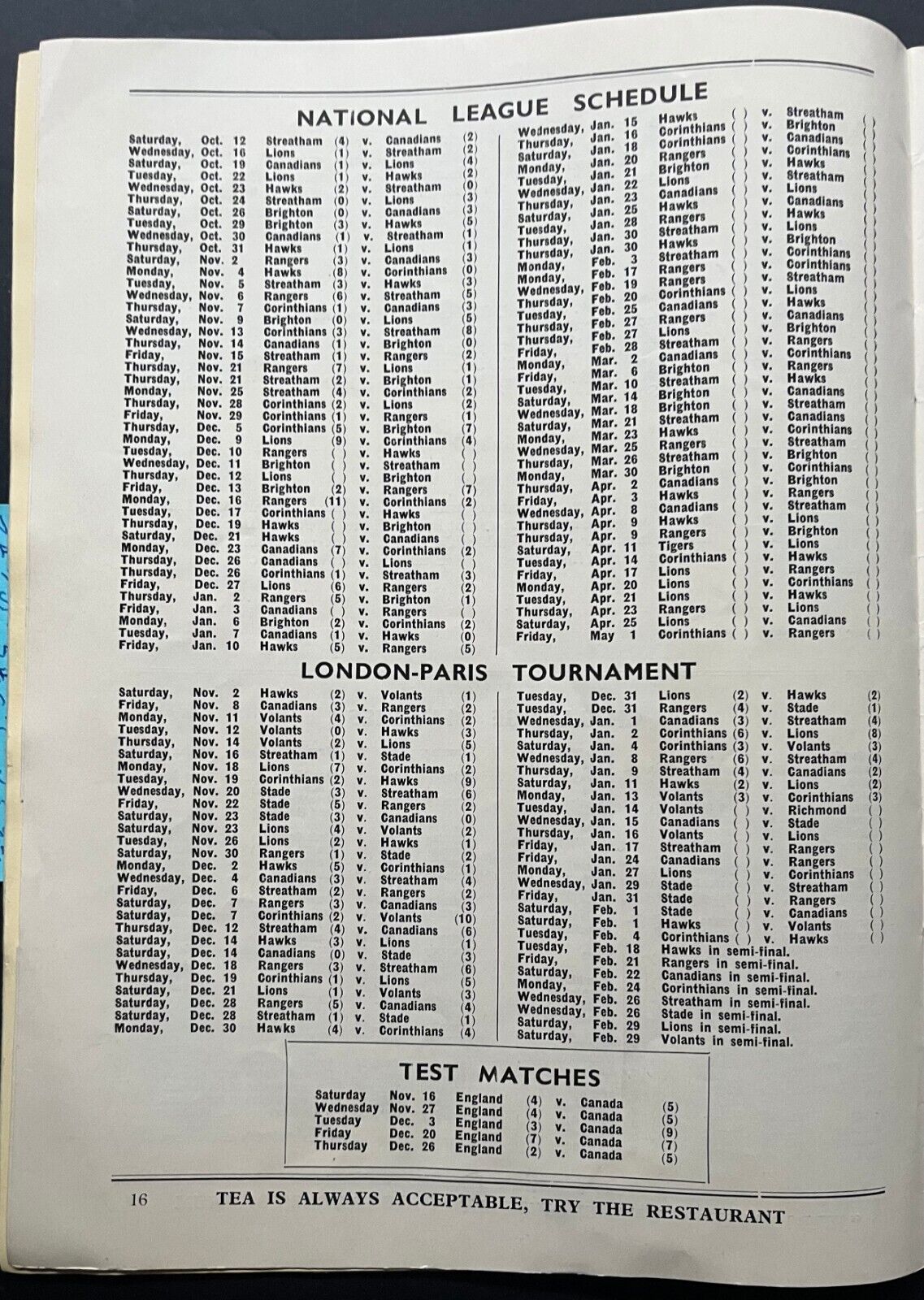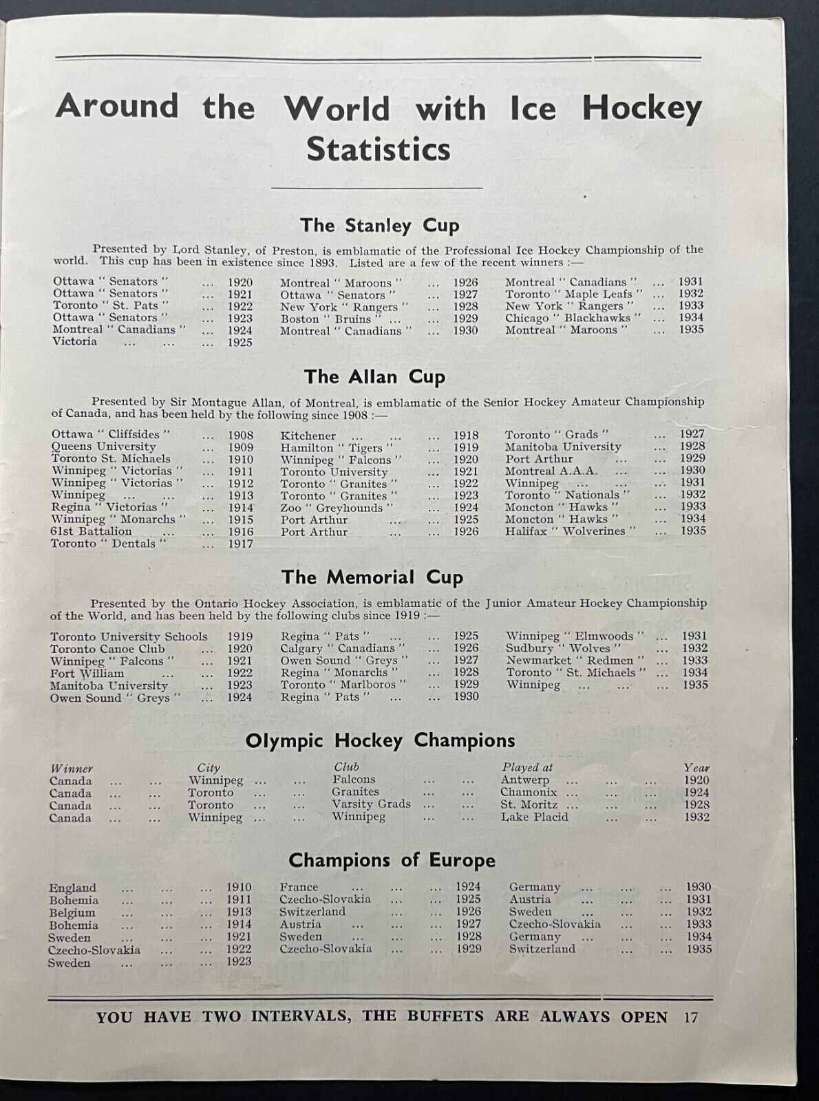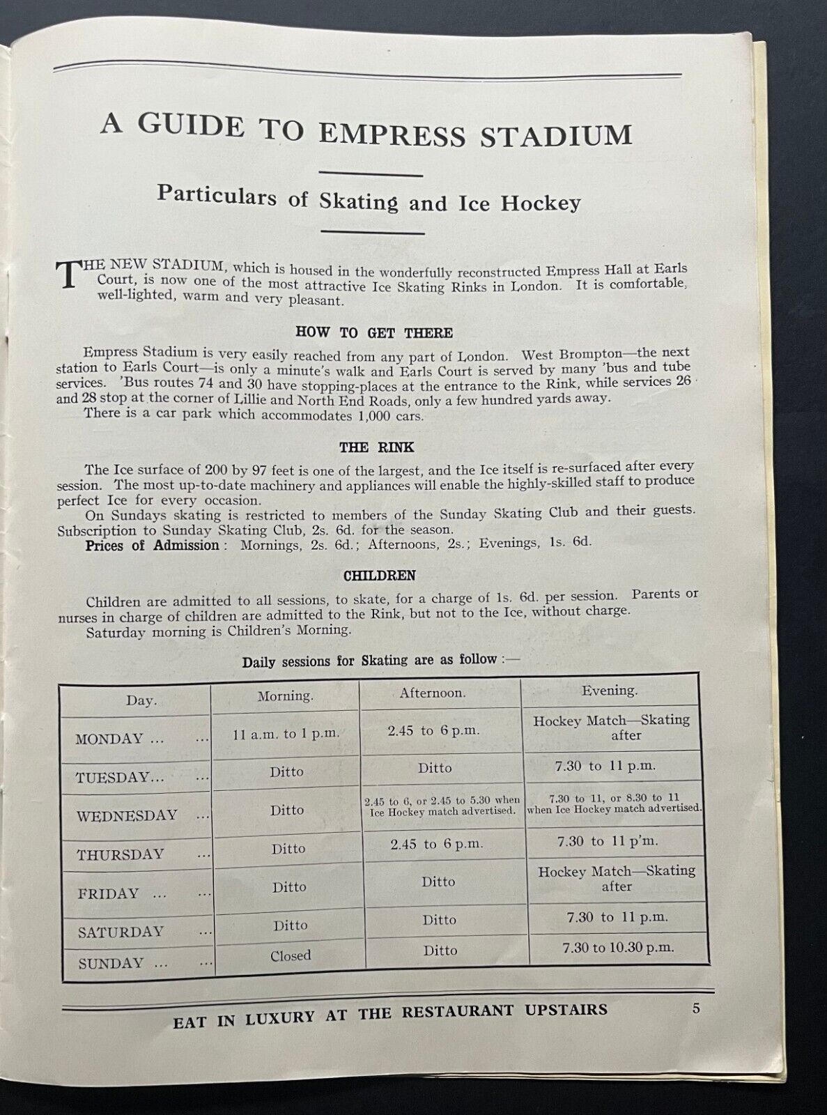 - January 24th, 1936 Hockey program from Empress Stadium at Earls Court