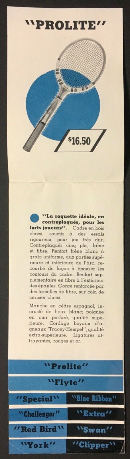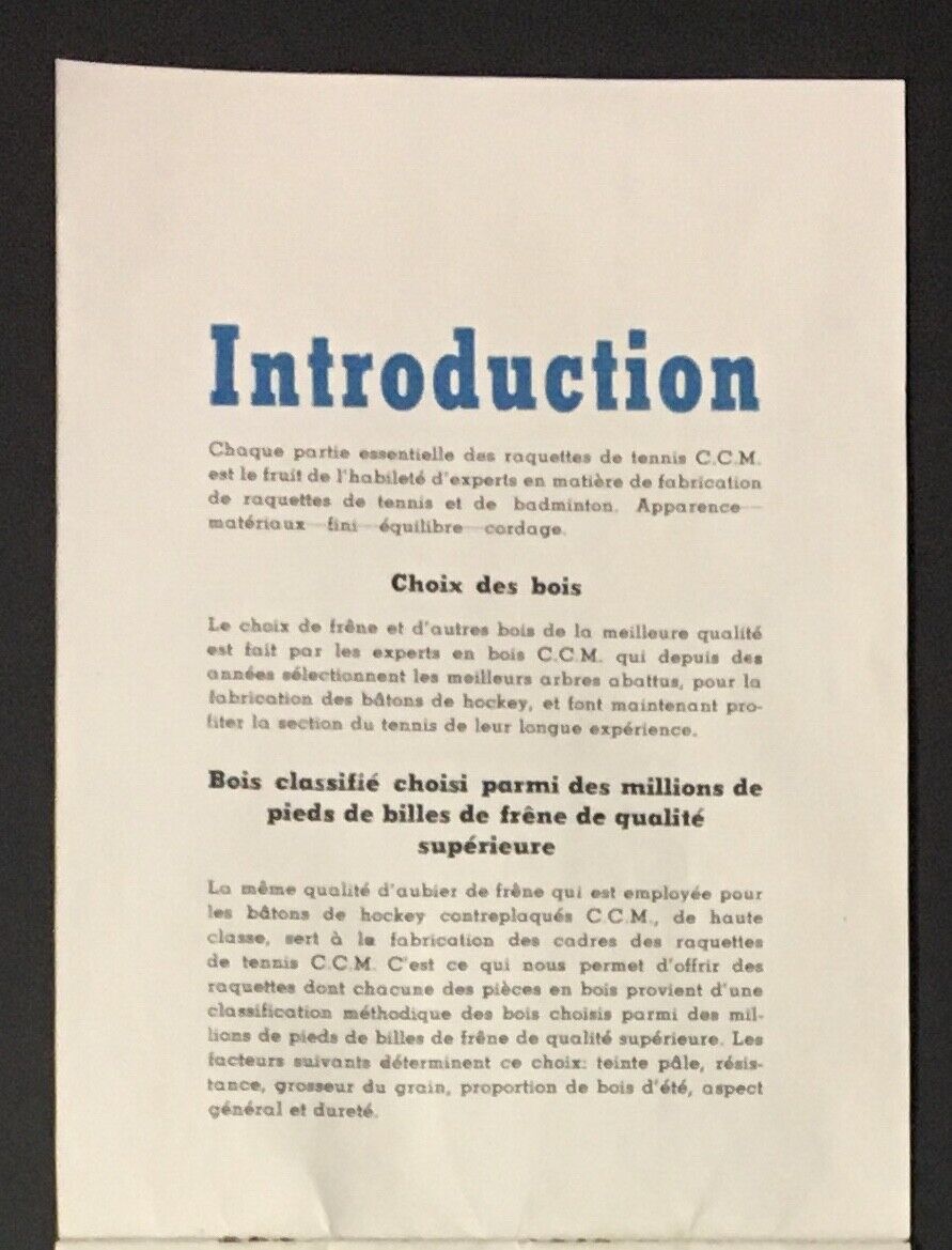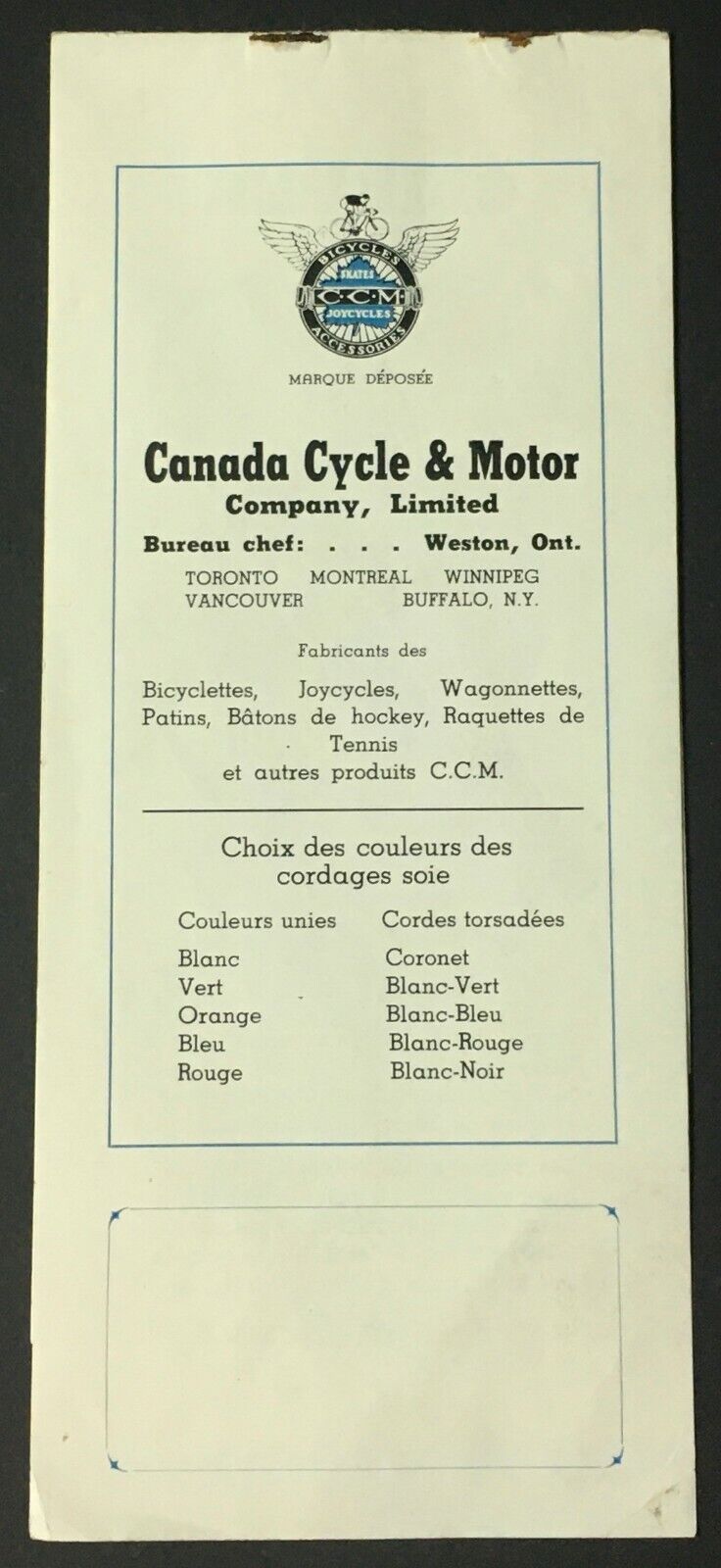 • 1939 CCM Tennis Racket brochure / catologue in French
