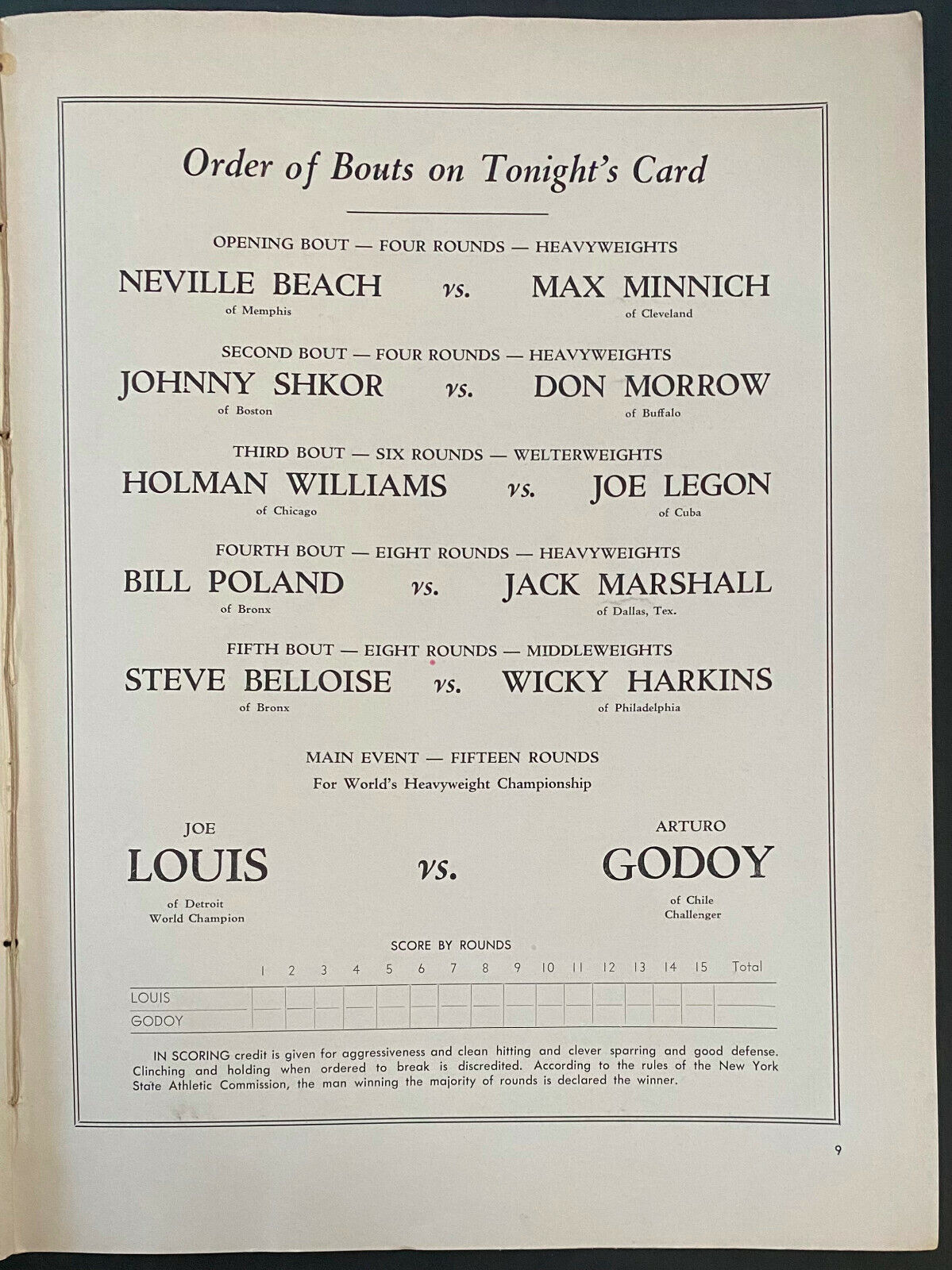 - June 20th, 1940 Joe Louis Heavyweight Championship fight program at Yankee Stadium