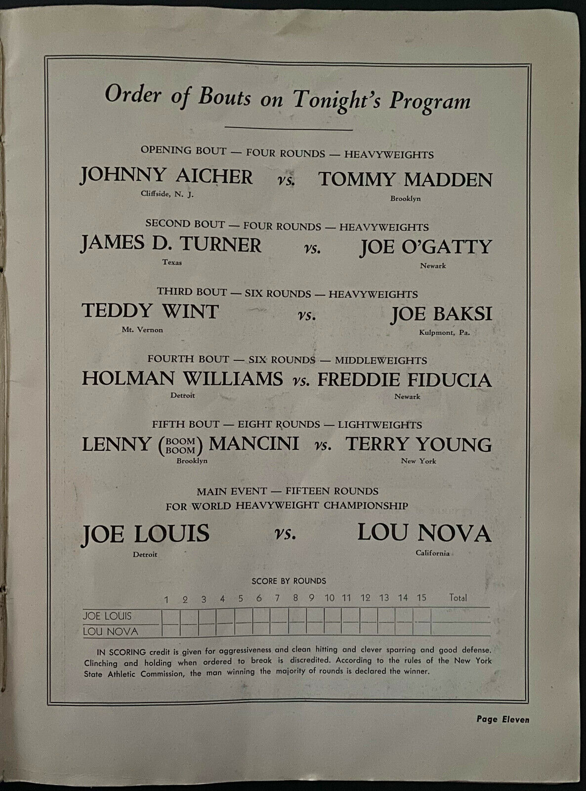 - Sept 29, 1941 Polo Grounds Heavyweight Championship fight program