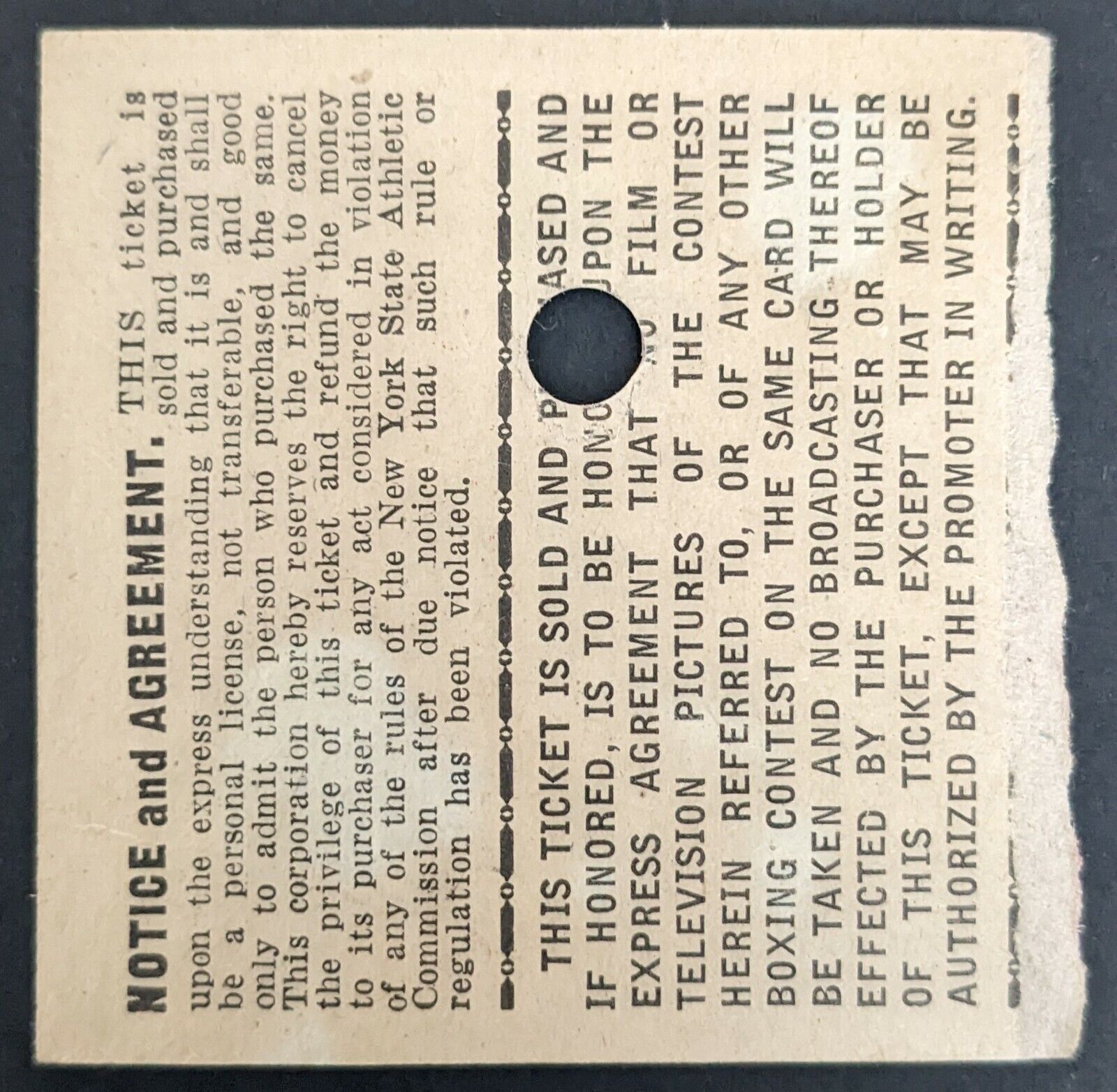 - May 19th, 1950 Madison Square Garden Boxing Vintage Ticket Stub