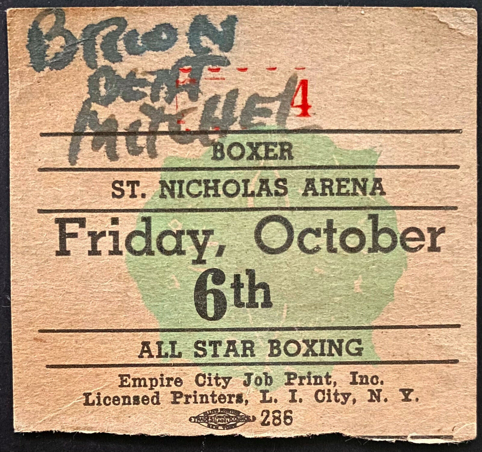 - 1950 St. Nicholas Arena New York City Boxing Ticket