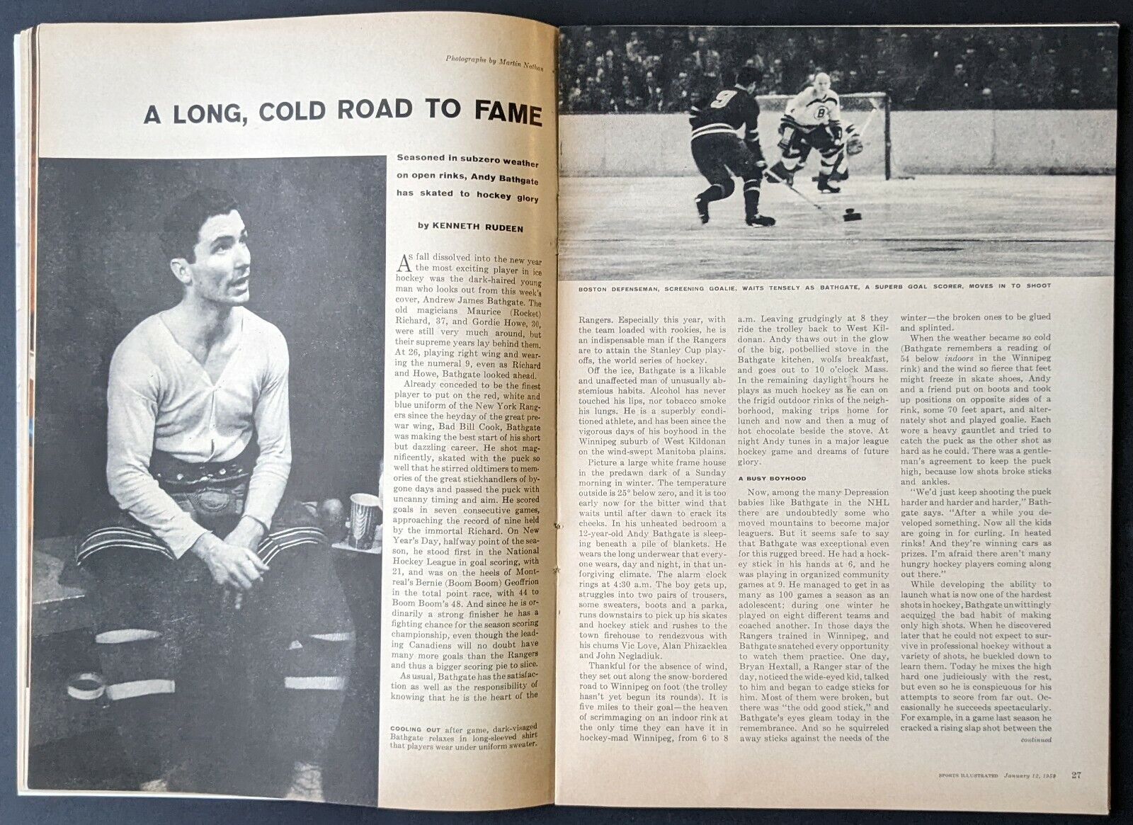 - 1959 Sports Illustrated Magazine Andy Bathgate New York Rangers Cover