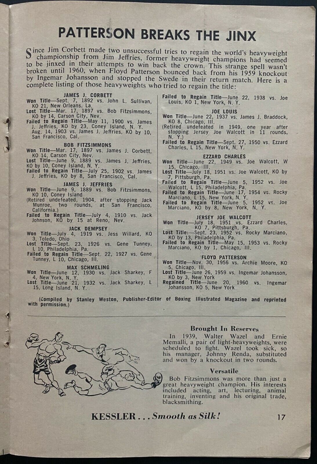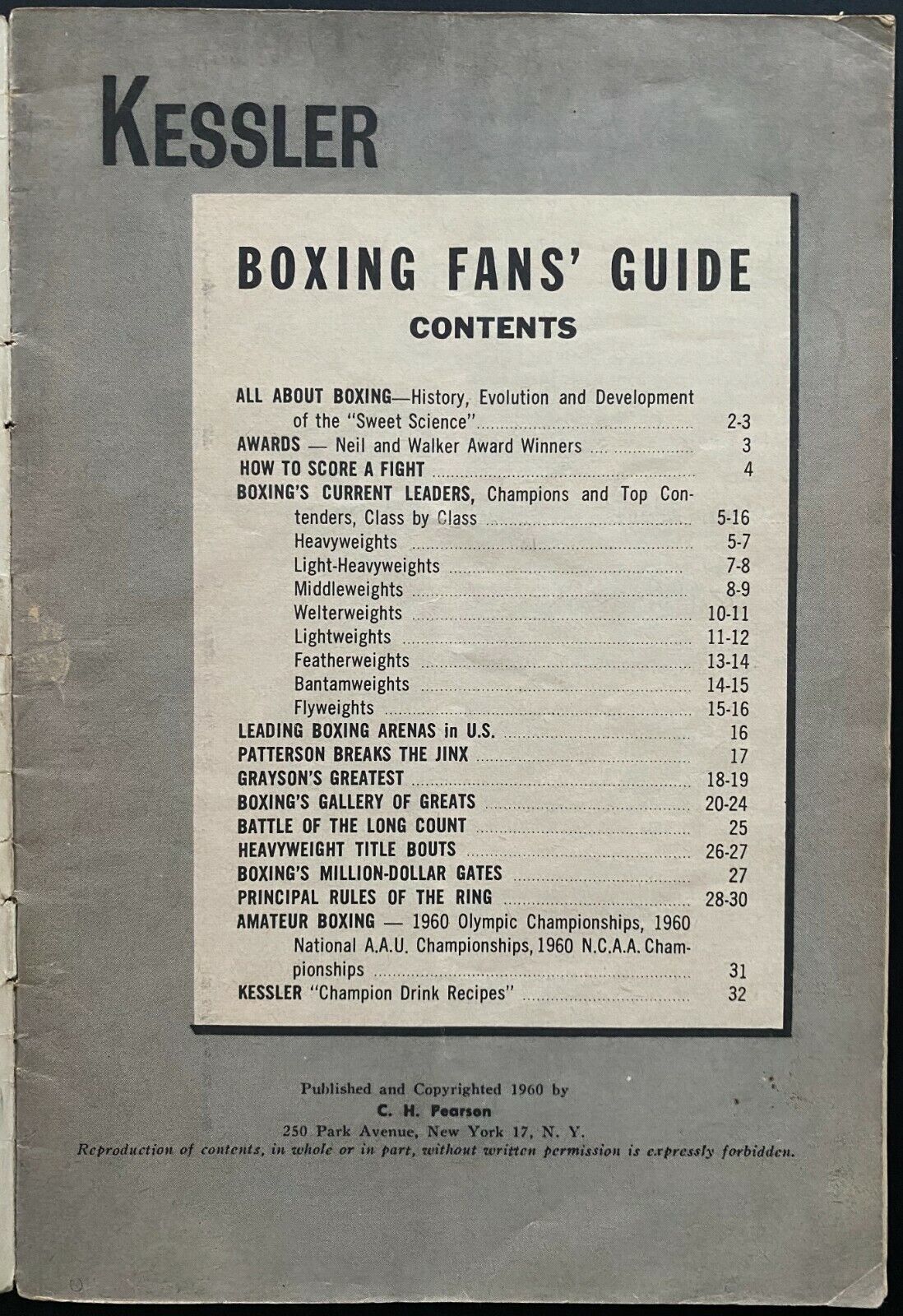 - 1960 Smooth As Silk Kessler Boxing Fan's Guide Book