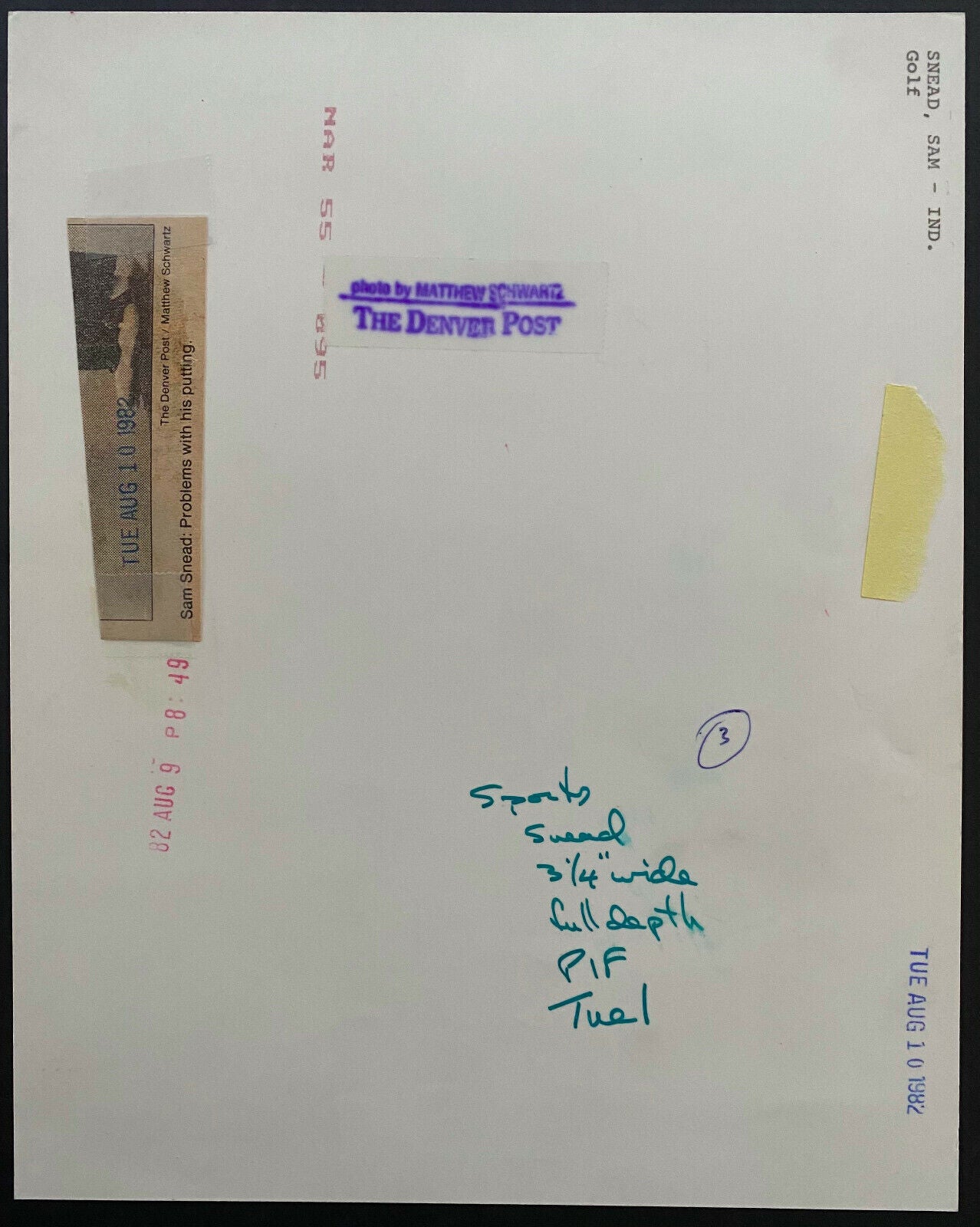 • Aug 9, 1982 Type 1 Denver Post Press Photo Hall Of Fame Golfer Sam Snead Putting