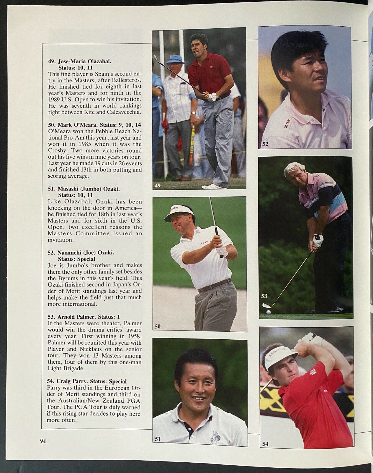 - 1990 PGA golf program for Masters tournament at Augusta National Golf Club in Augusta, Georgia