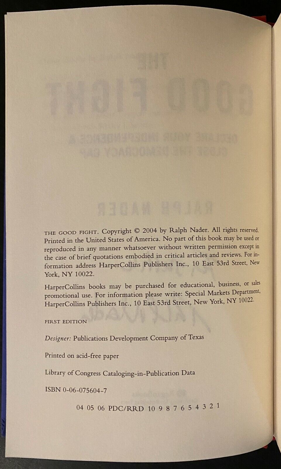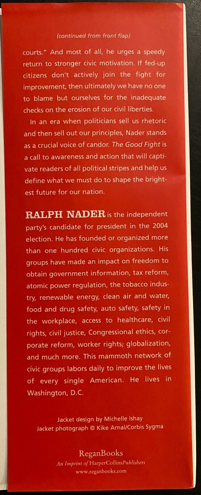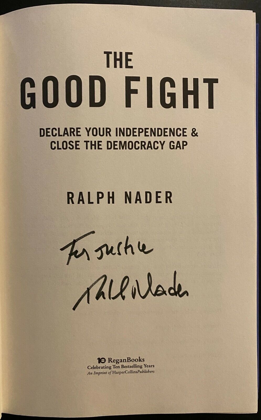 - Signed copy of Ralph Nader's 2004 novel The Good Fight