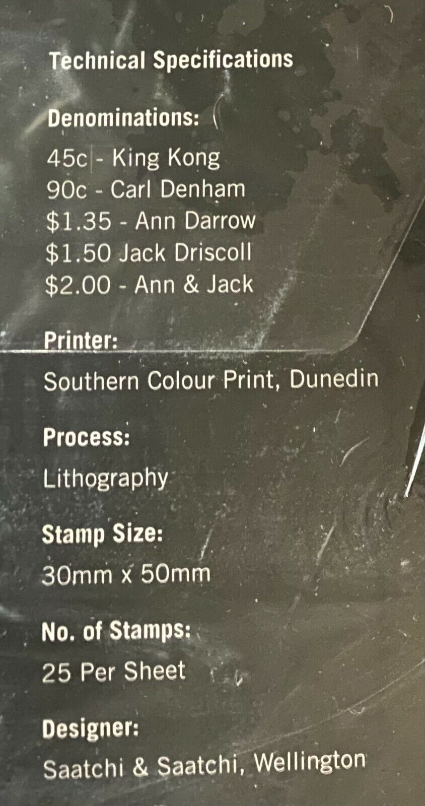 - 2005 King Kong Collectors Stamps Issued by New Zealand Post