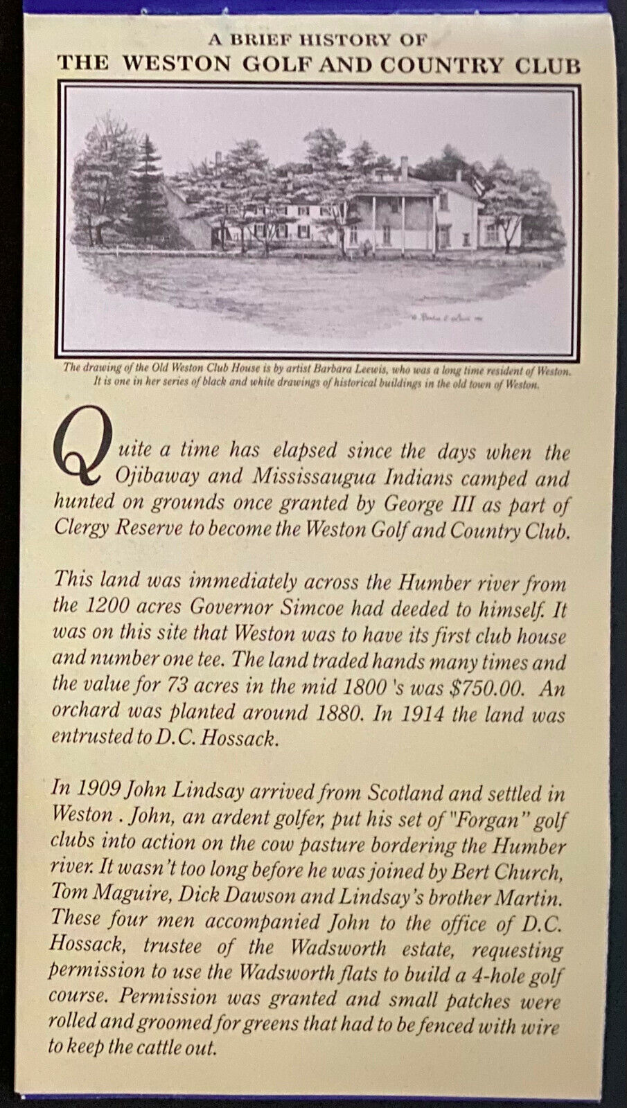 - 2005 Weston Golf and Country Club course guide featuring Arnold Palmer on the cover to celebrate the 50th anniversary of his 1st PGA tour victory which took place at the Weston Course when they hosted the 1995 Canadian Open PGA Golf Tournament