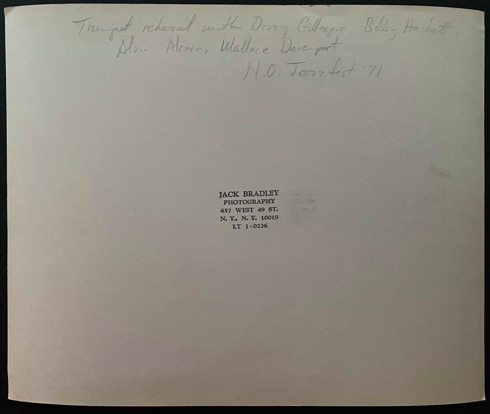 - Obtained at 1971 New Orleans Jazz Festival