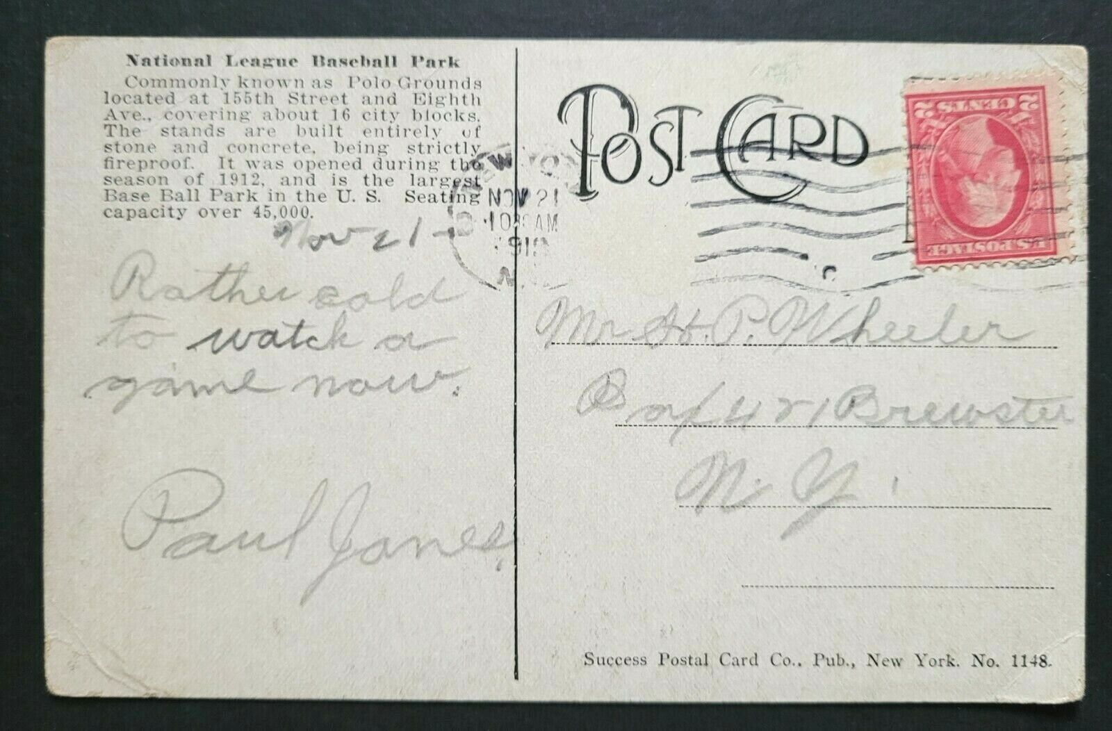 - c1912 New York Giants Polo Grounds Postcard Posted Baseball John McGraw Vtg