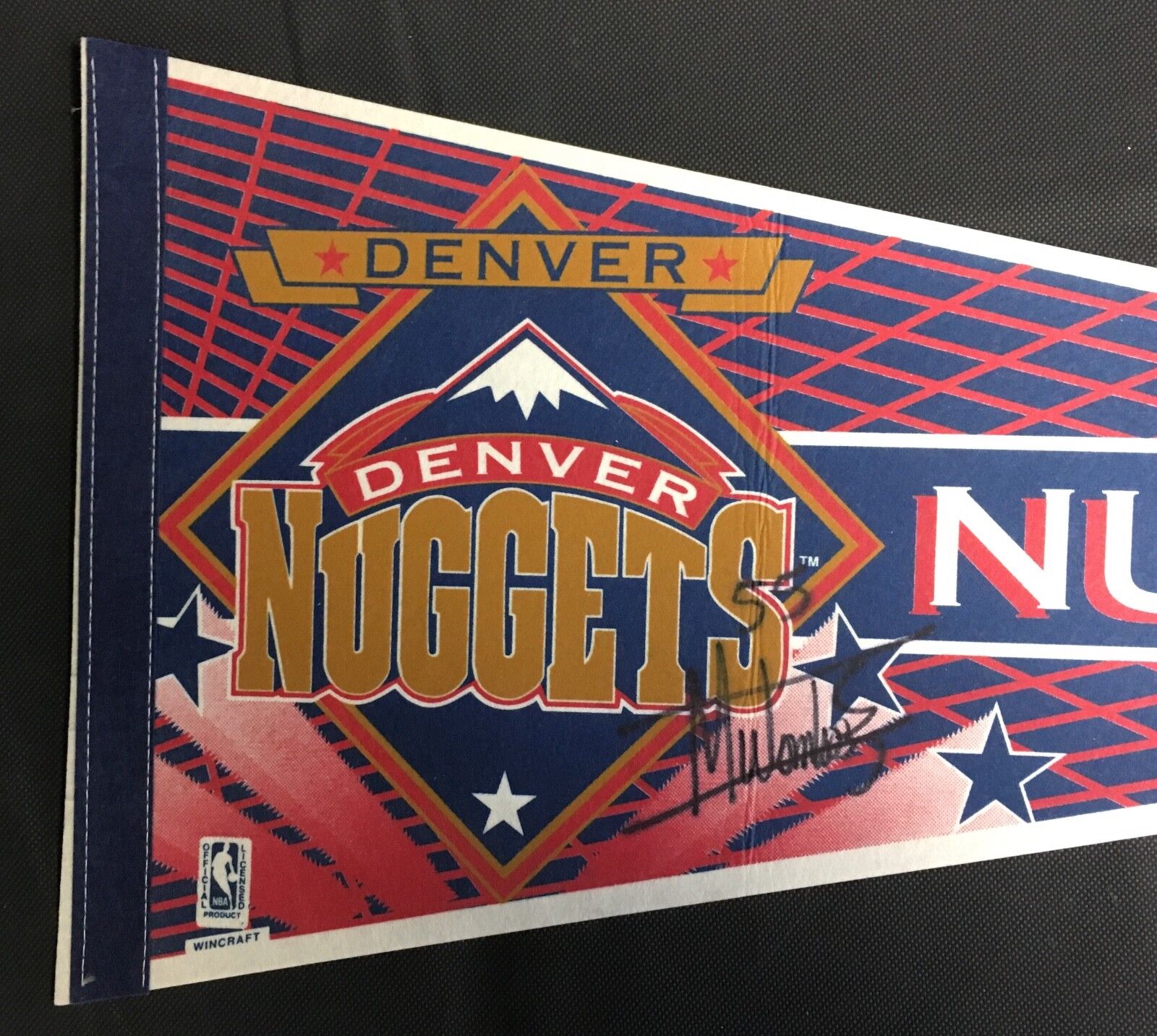 - Vintage Denver Nuggets NBA basketball pennant autographed by Dikembe Mutombo
