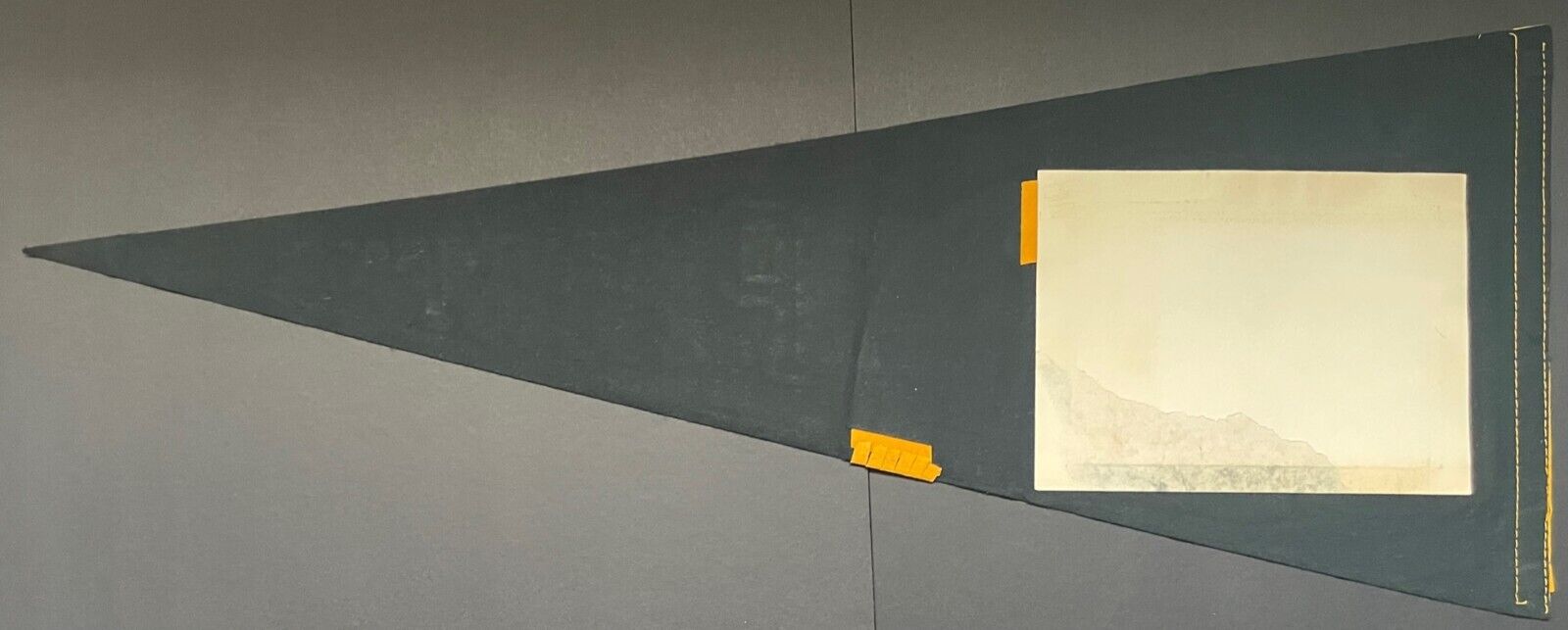 - Very good condition; very small pinhole at the tip, little to no notable creasing, no rips or tears. Tassels have been snipped. Back of team photo has some surface paper loss, only visible from the back.