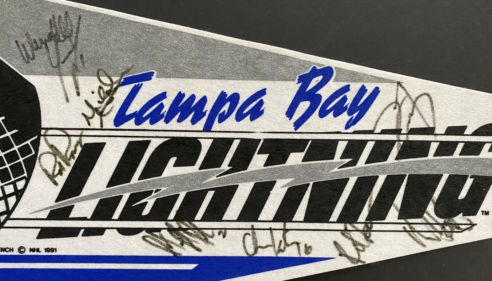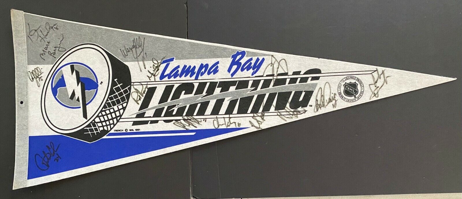 - Vintage early 1990s Tampa Bay Lightning pennant, signed by several Lightning players from over the years