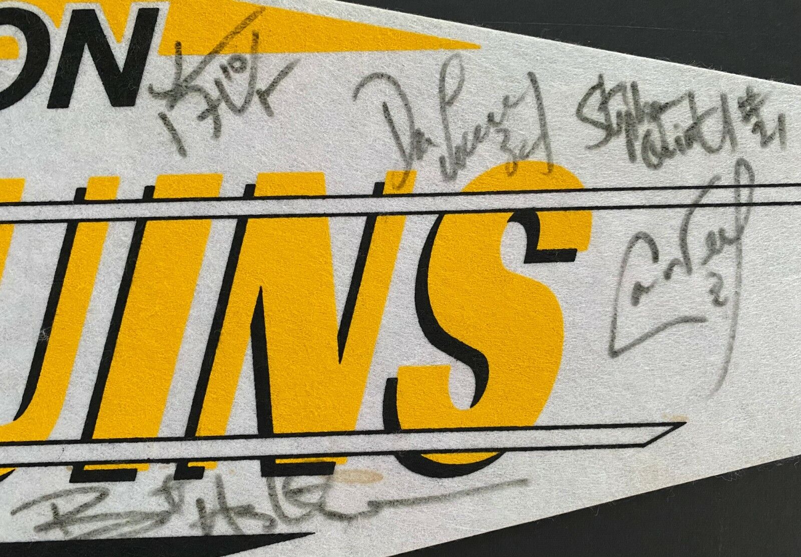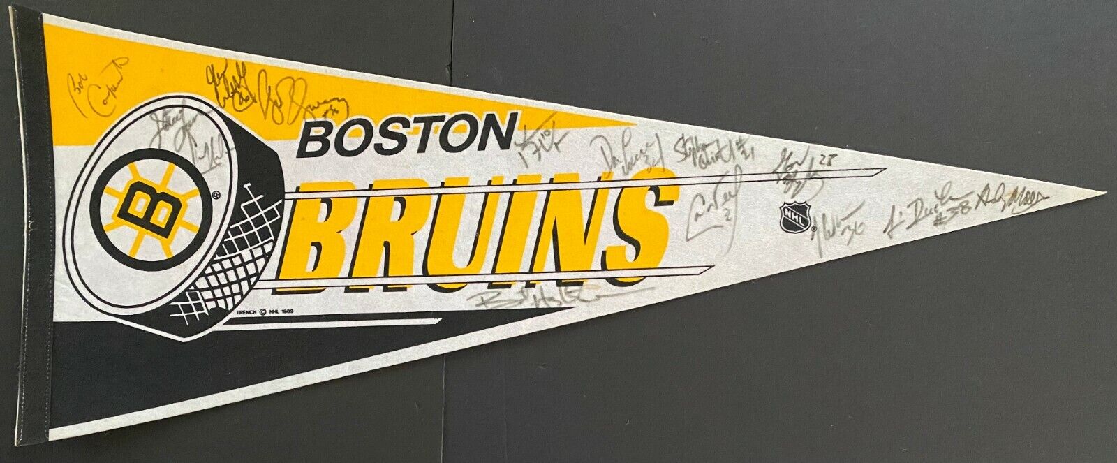 - Vintage 1991 Boston Bruins pennant, signed by several Bruins players from over the years