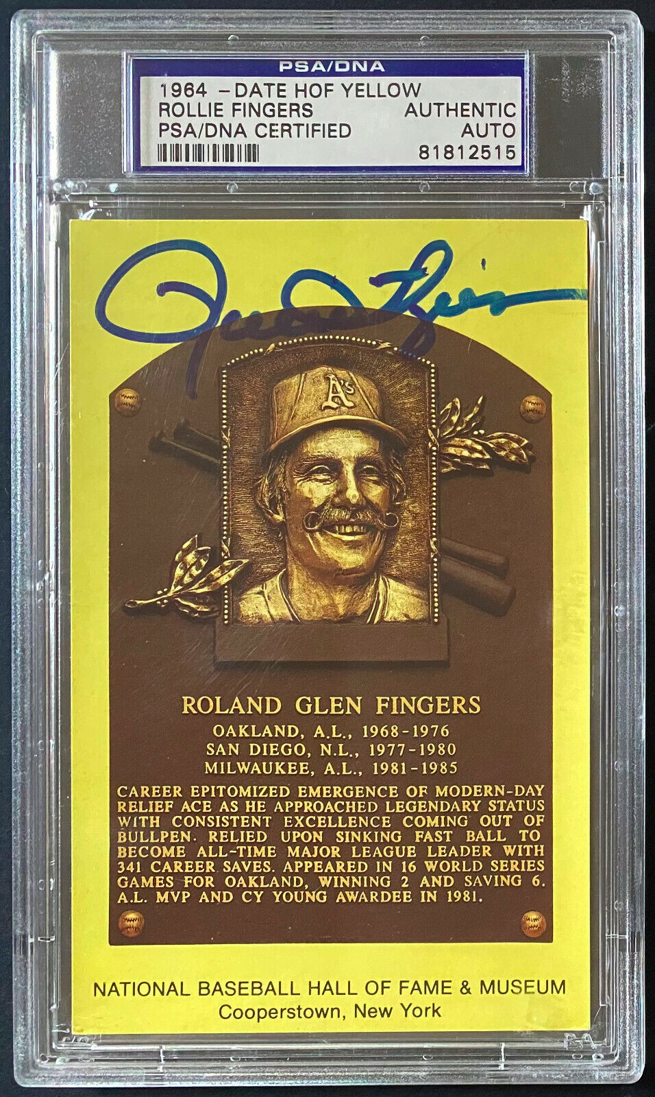 - Rollie Fingers signed 1964 yellow Baseball Hall of Fame plaque post card