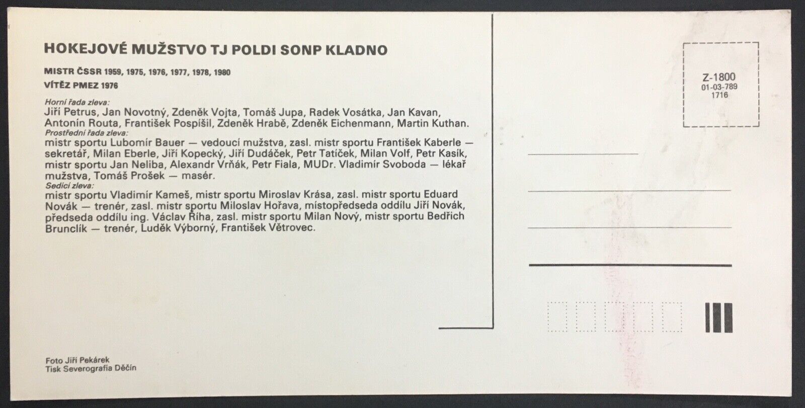 - 1980 postcard featuring Poldi SONP Kladno, Champions of the Czechoslovak Extraliga