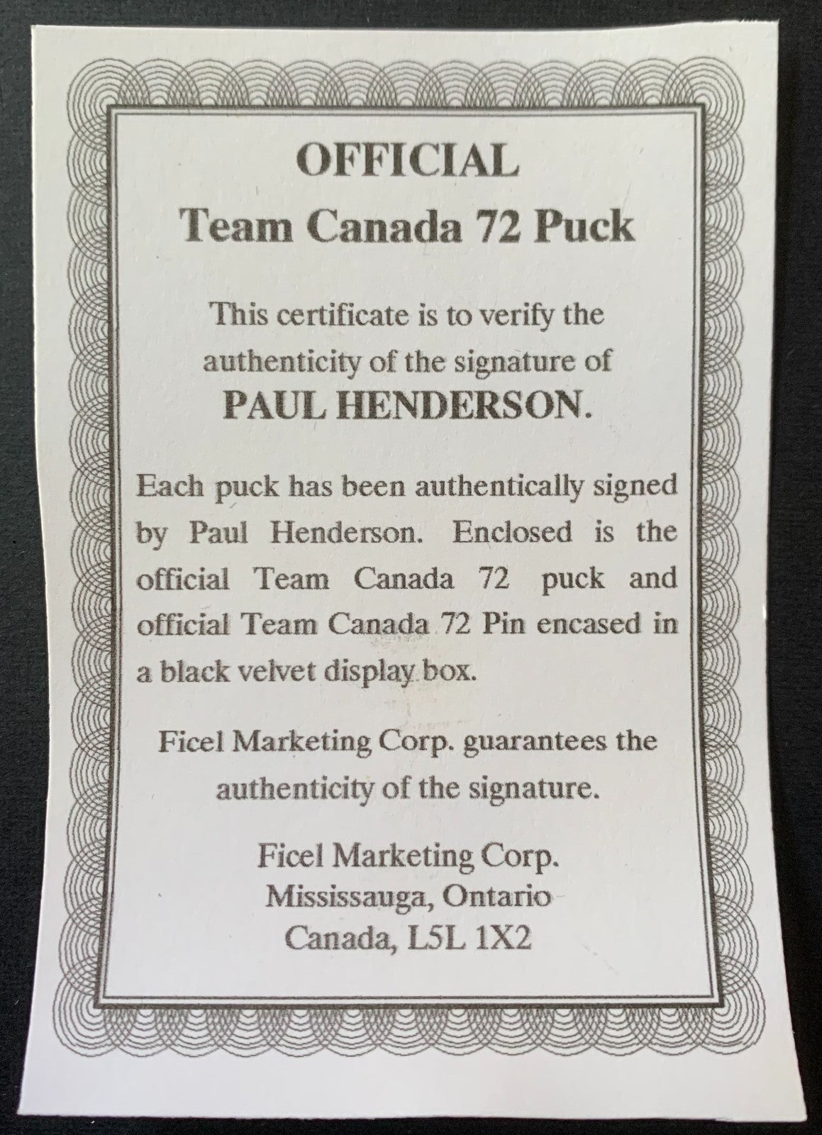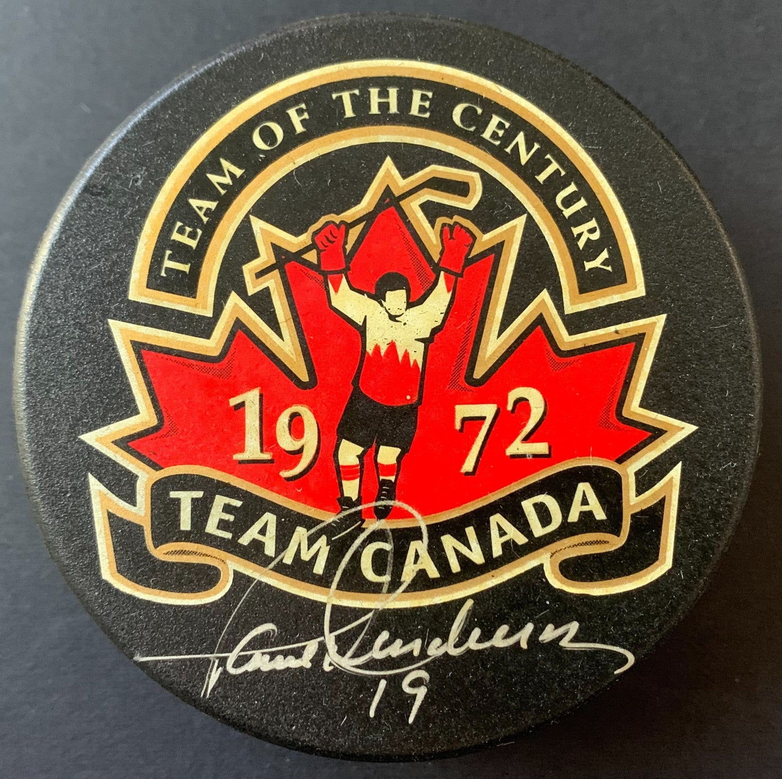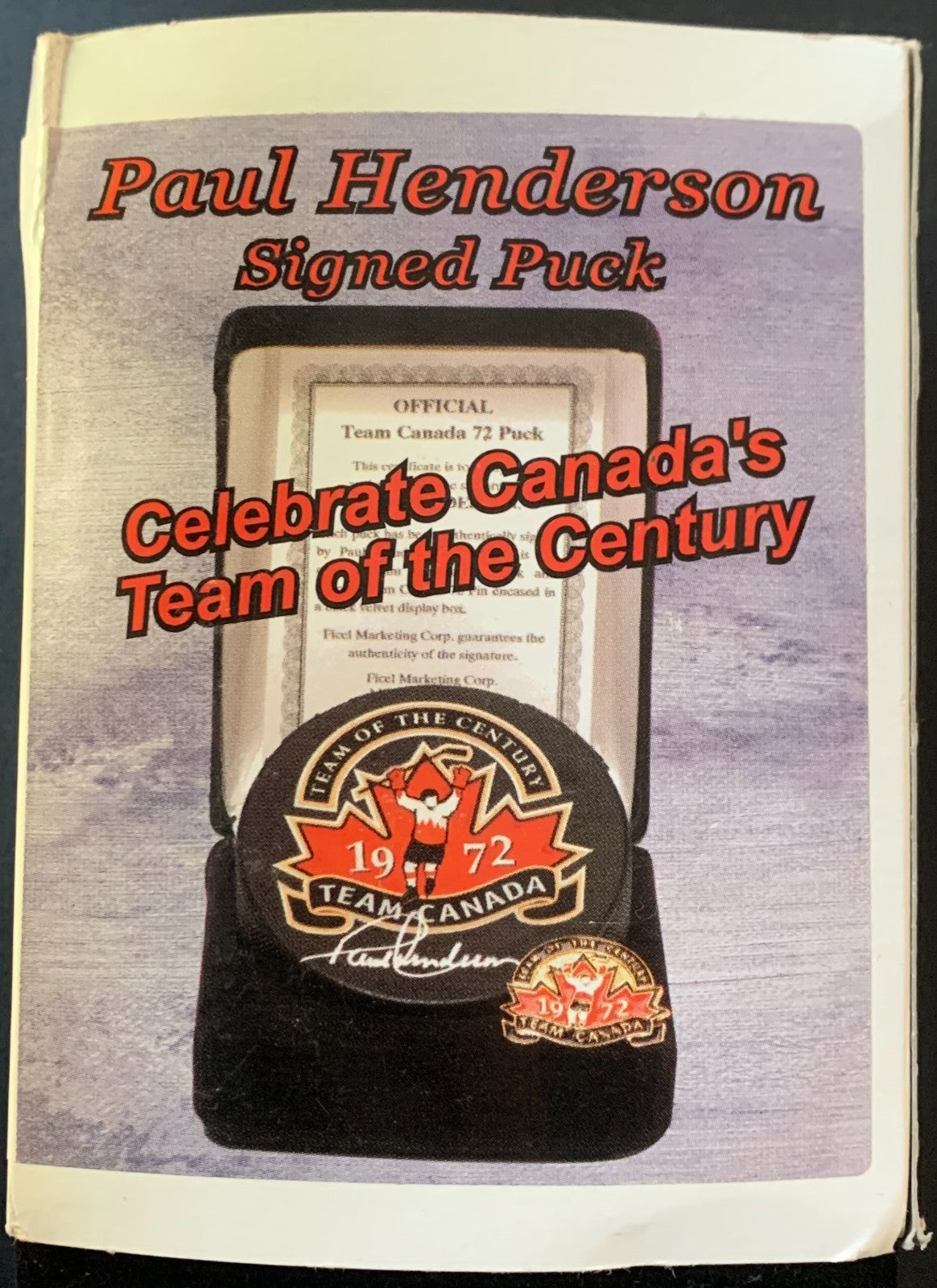 - 1972 Paul Henderson Signed Autographed Summit Series Team Canada Puck + Pin COA