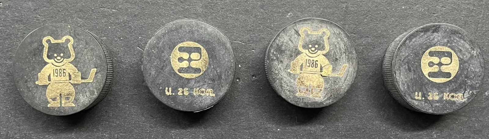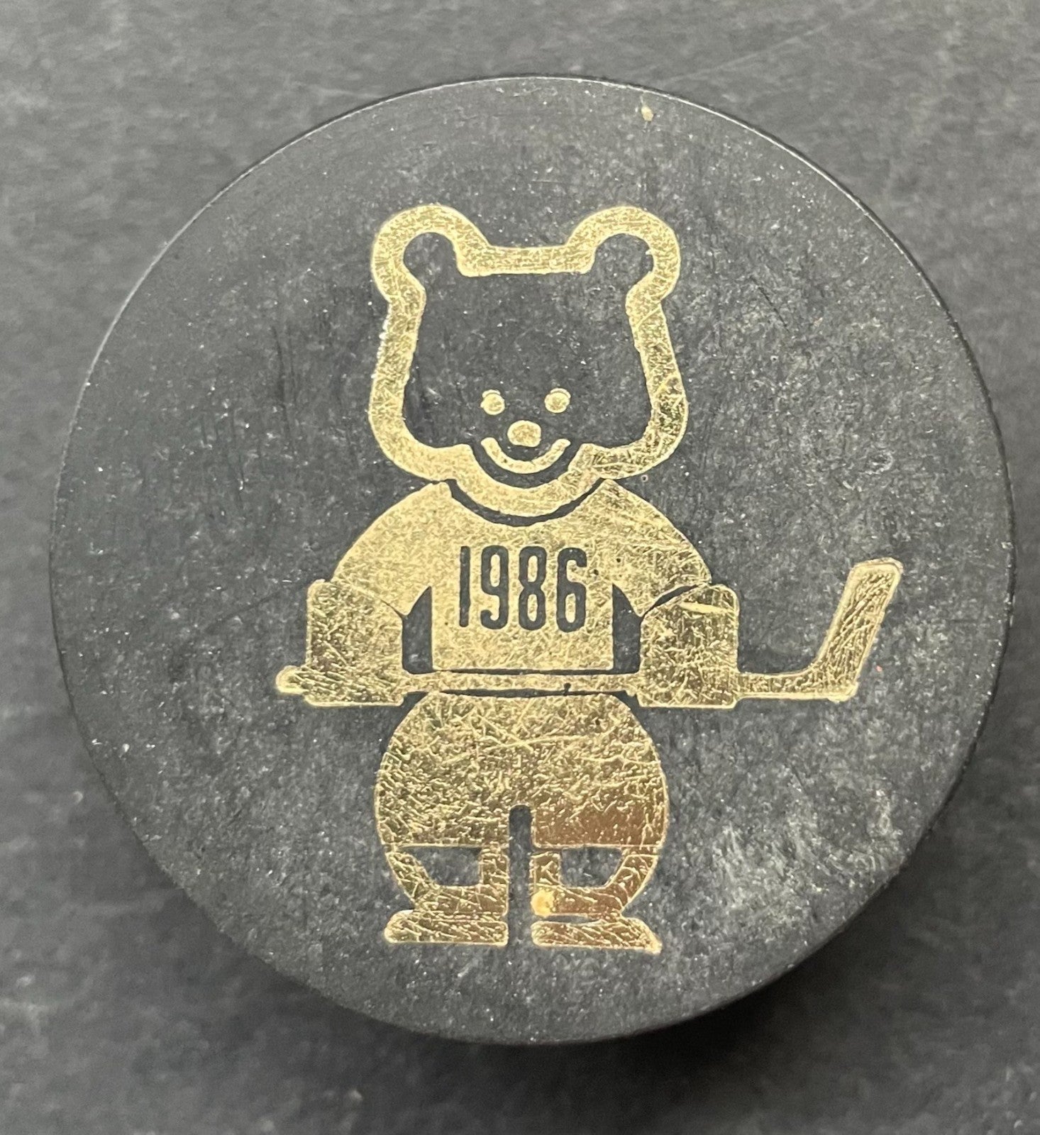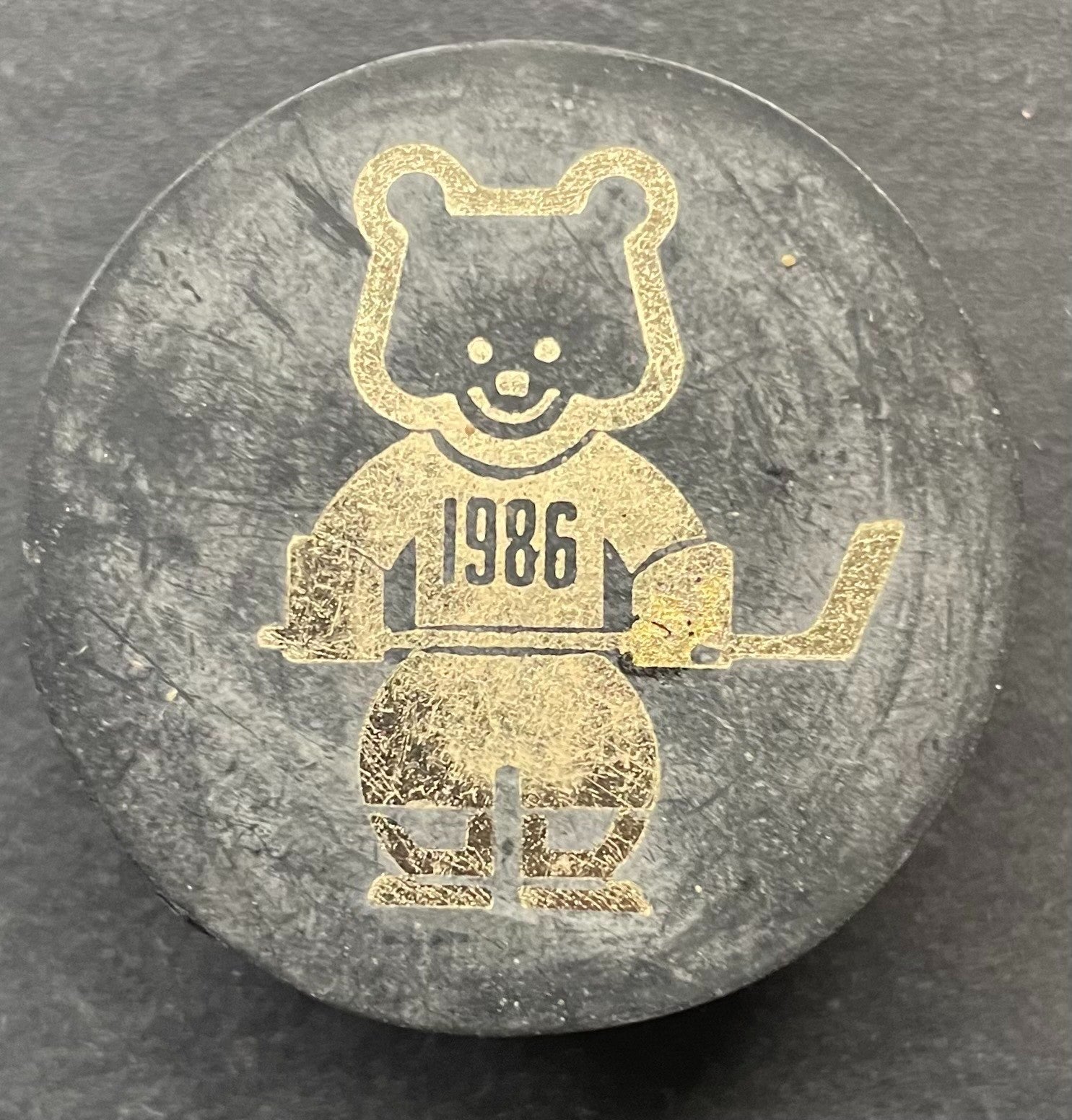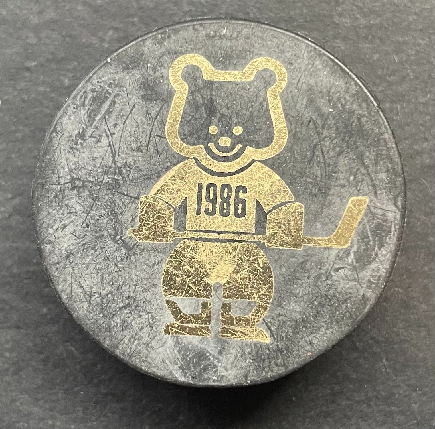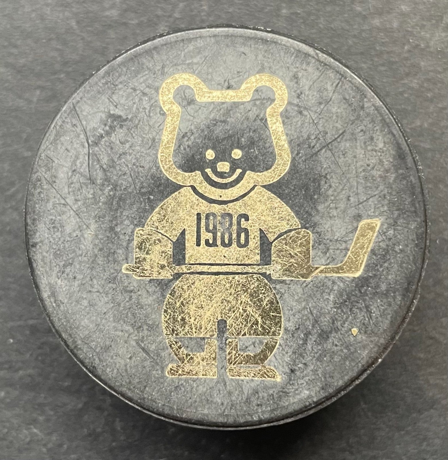 • Mini pucks issued for 1986 World Ice Hockey Championship held in Moscow. Russia wins tournament. Canada finishes 3rd.