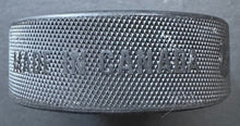 - Excellent game used condition; notable chunk of rubber notched out of one edge. Some scuffs, marks and nicks. Graphics present very well