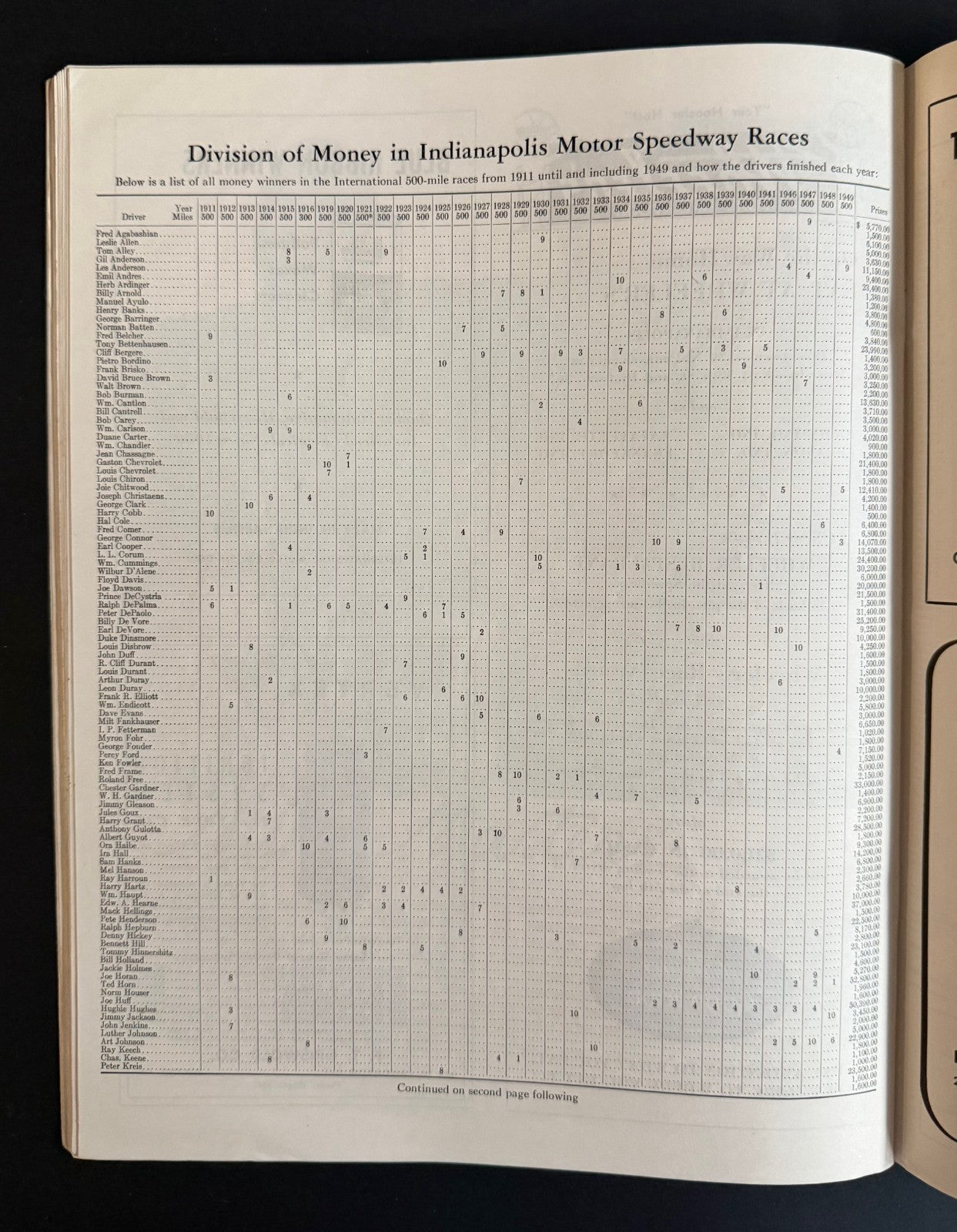 - 1950 34th Indy 500 Program