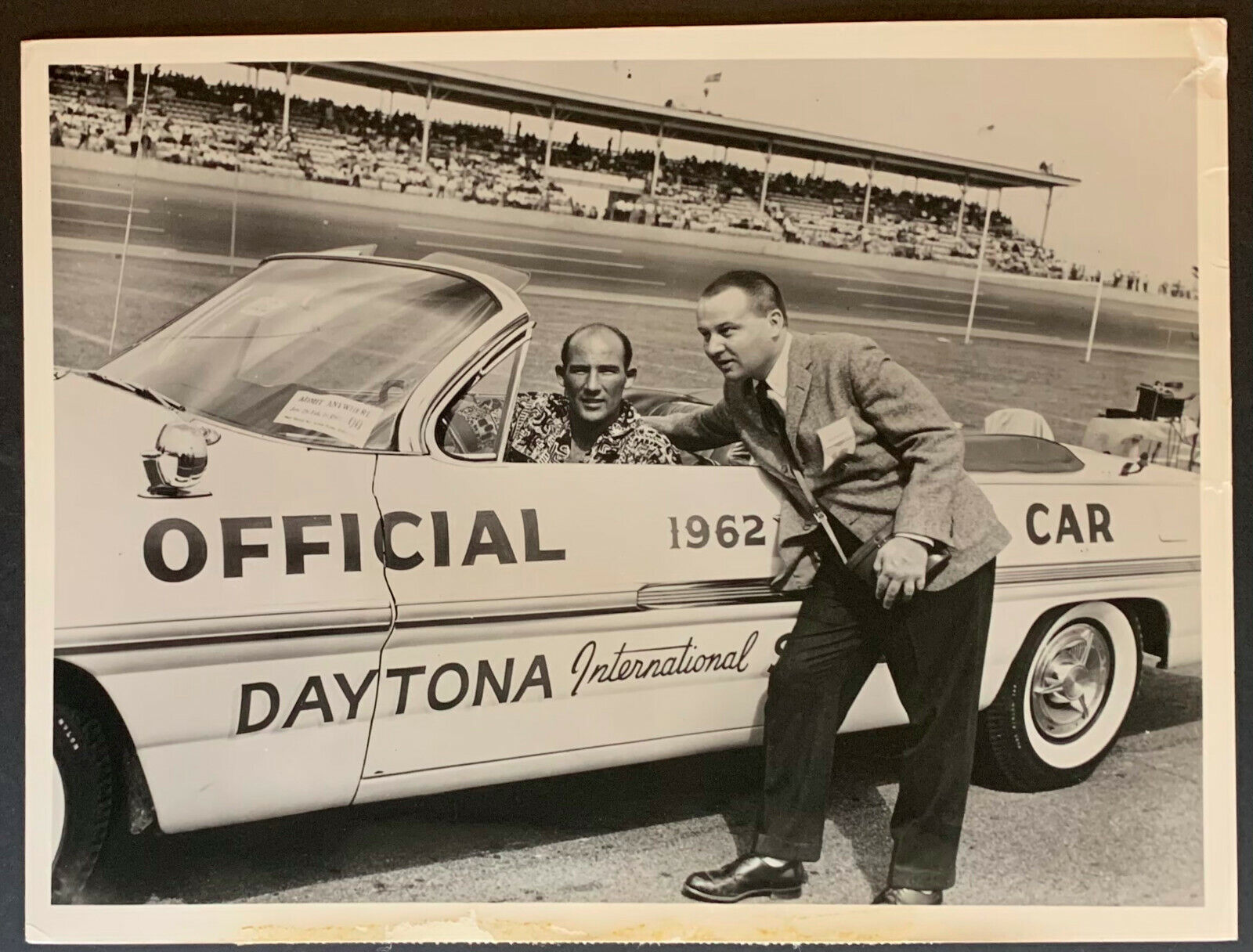 1962 ABC Press Photo Stirling Moss Behind The Wheel 4th Daytona 500 Pace Car VTG