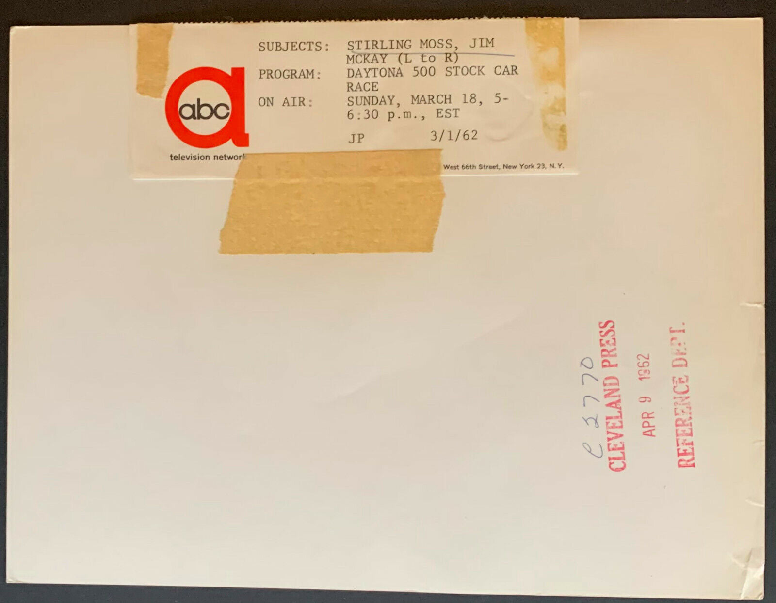 • Load image into Gallery viewer, 1962 ABC Press Photo Stirling Moss Behind The Wheel 4th Daytona 500 Pace Car VTG