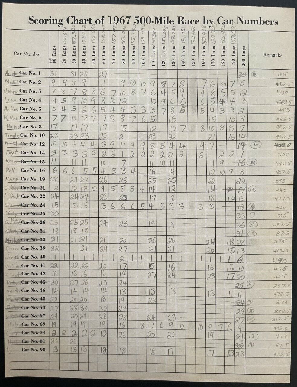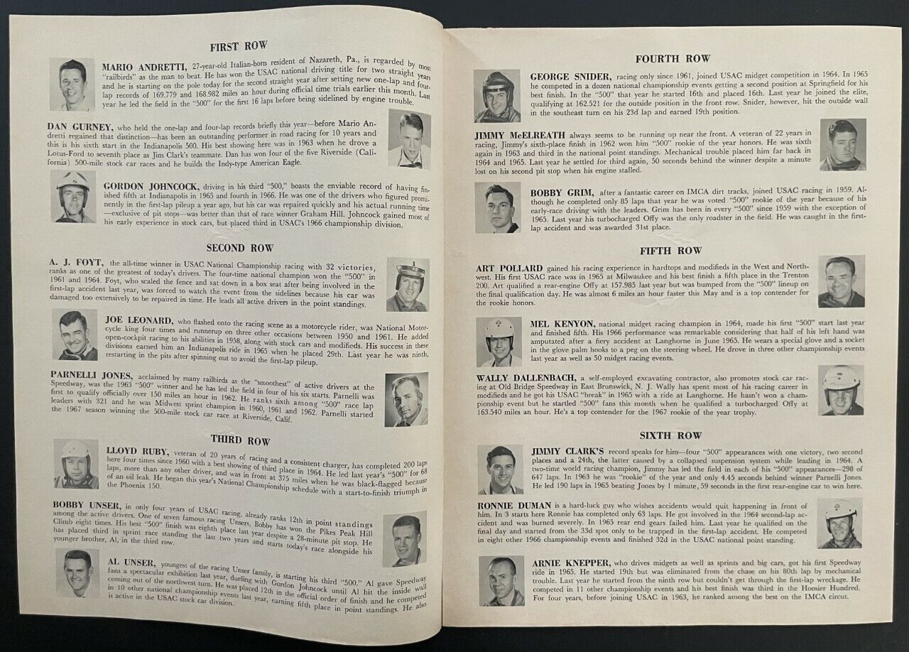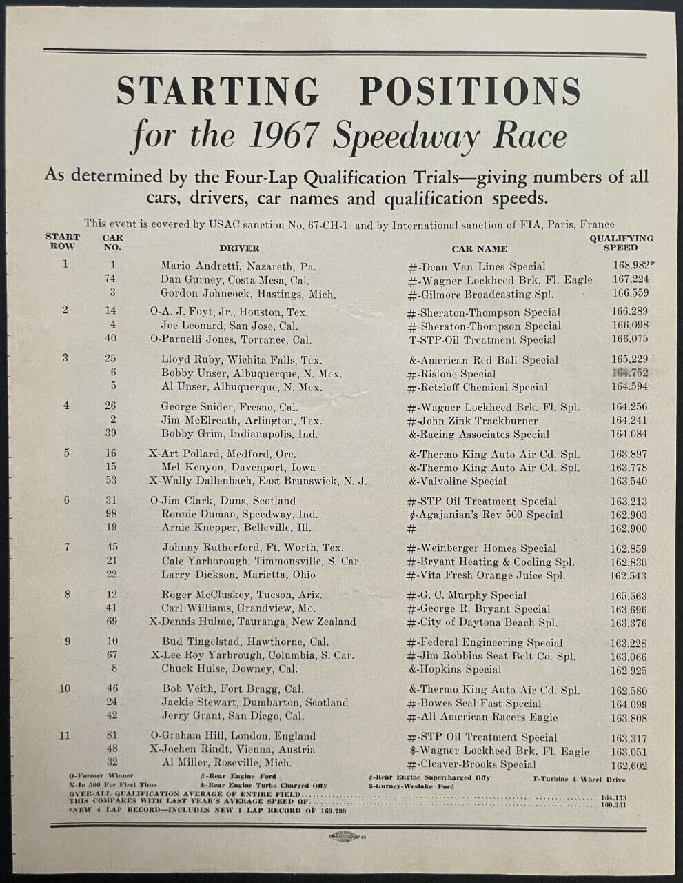- 1967 Indy 500 Racing Program. Also includes race day issued starting position lineup sheet