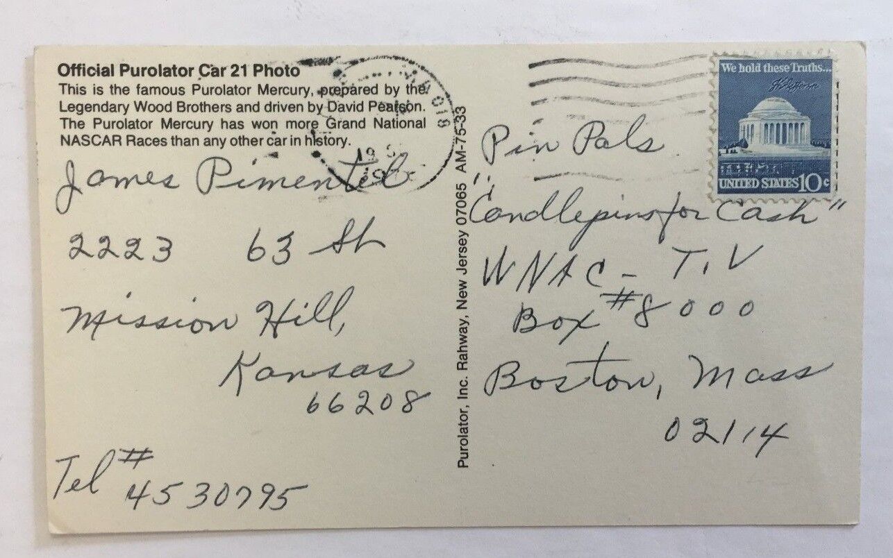 • 1970's NASCAR Postcard of famous Purolator Mercury prepared by legendary Wood Brothers and was driven by famous race car driver David Pearson