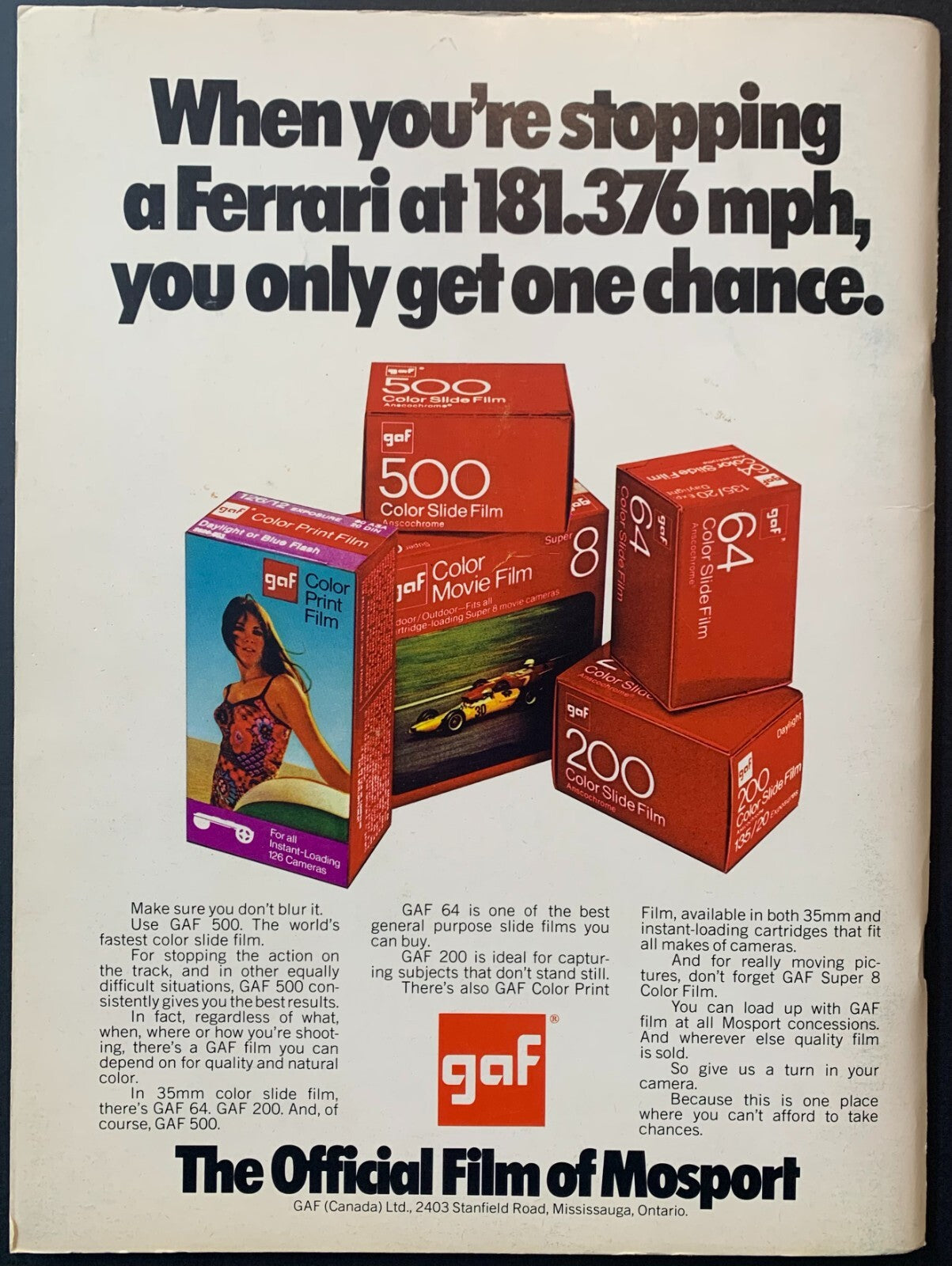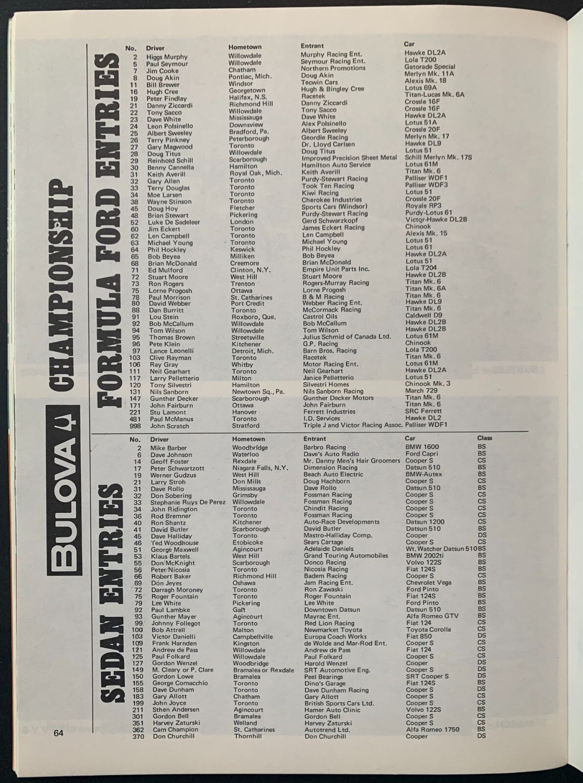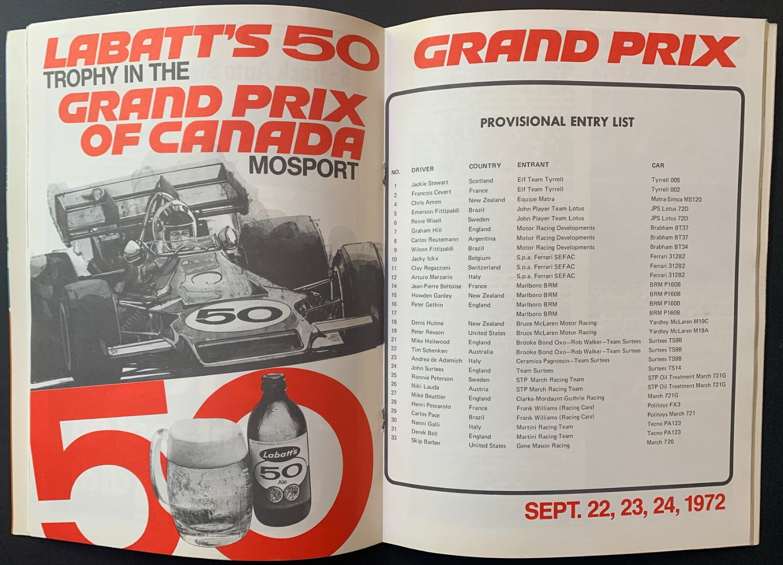1972 Canadian Grand Prix Program Labatts Mosport Park F1 Racing Jackie Stewart