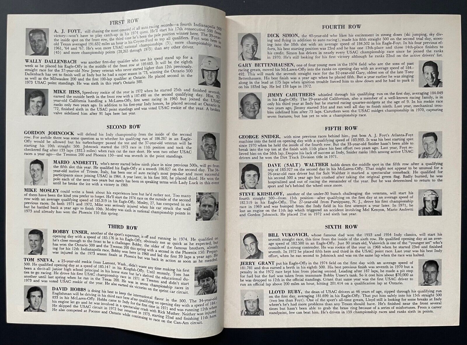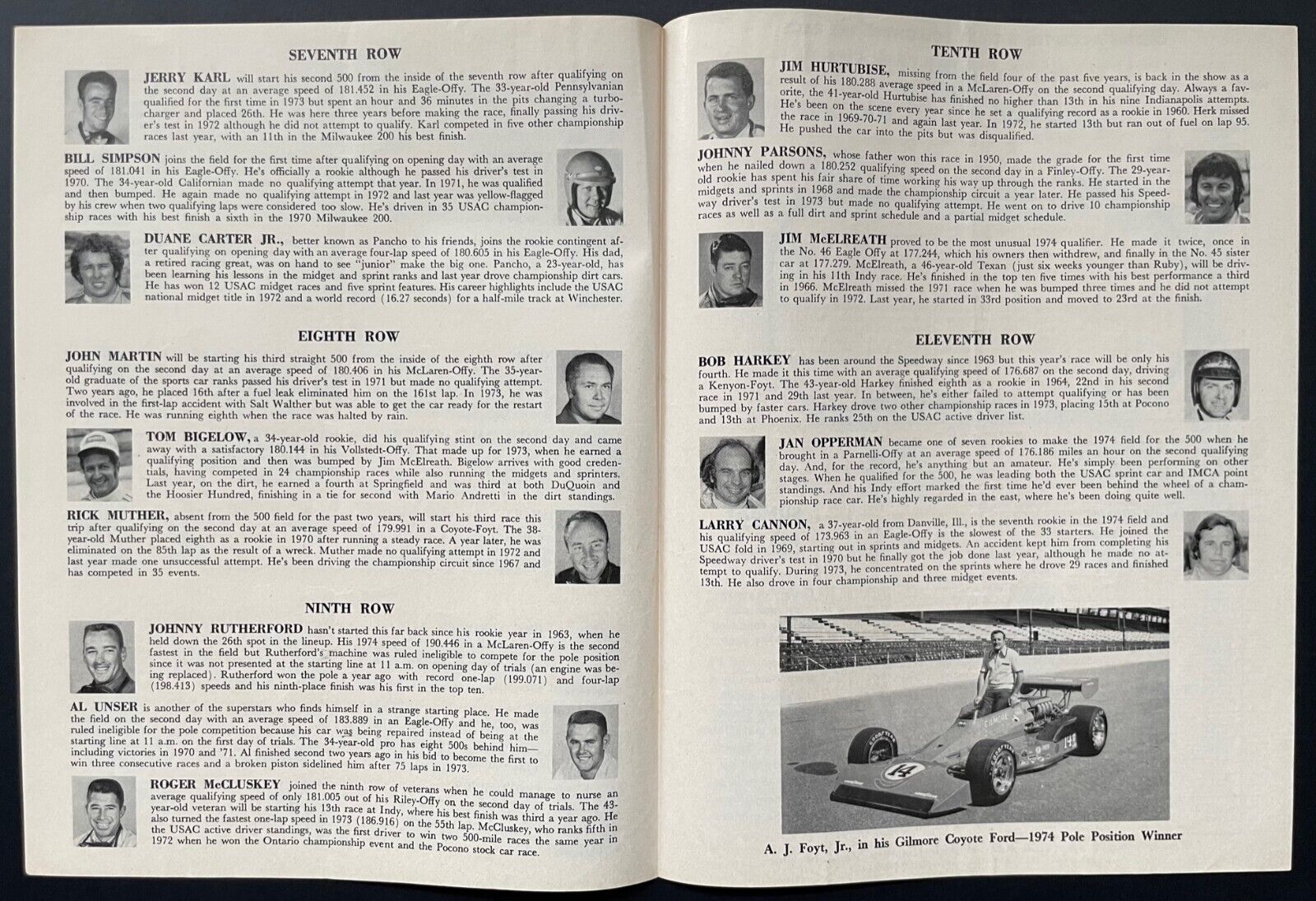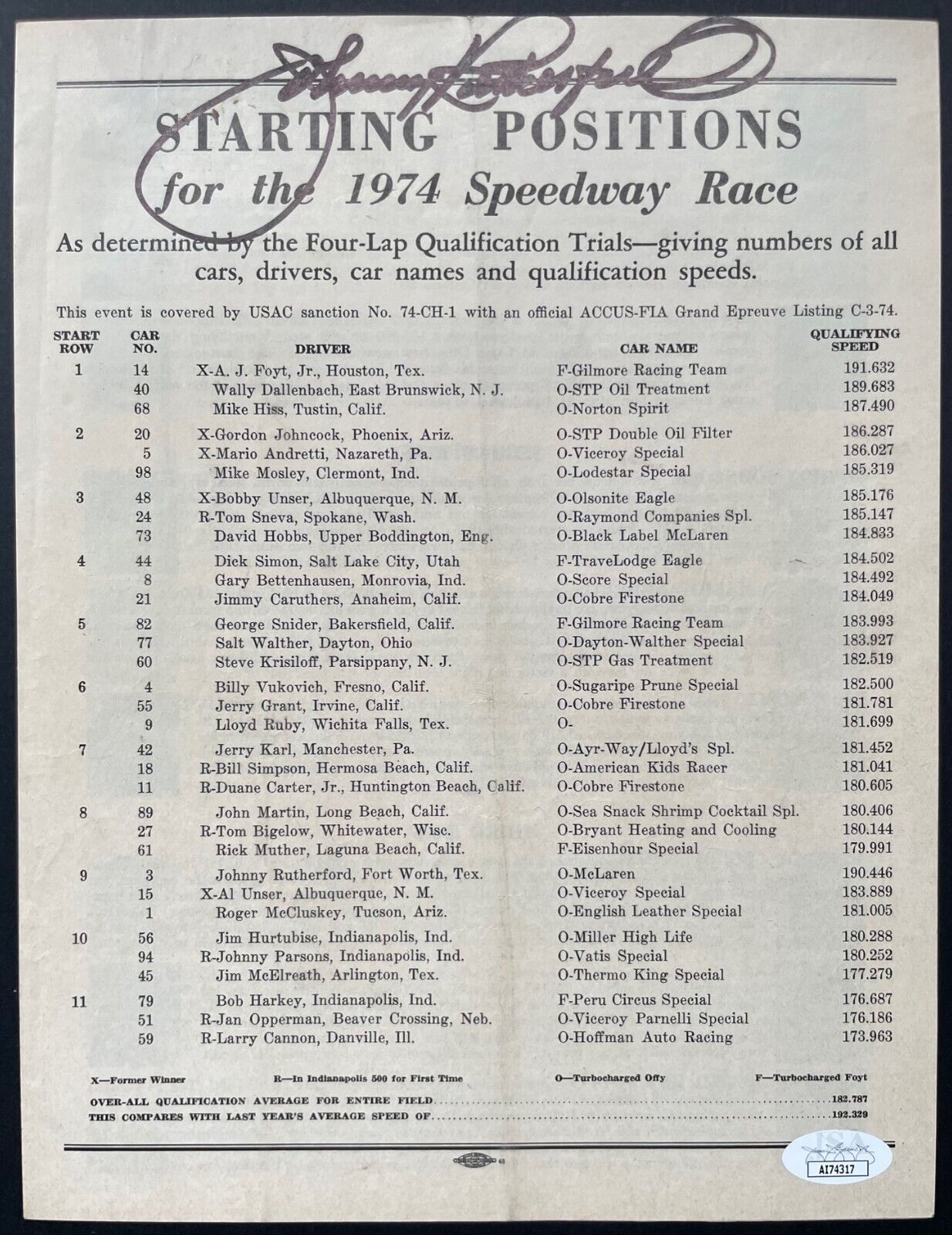 - 1974 Indianapolis 500 Race Day Issue Autographed by race winner Johnny Rutherford, authenticated by JSA