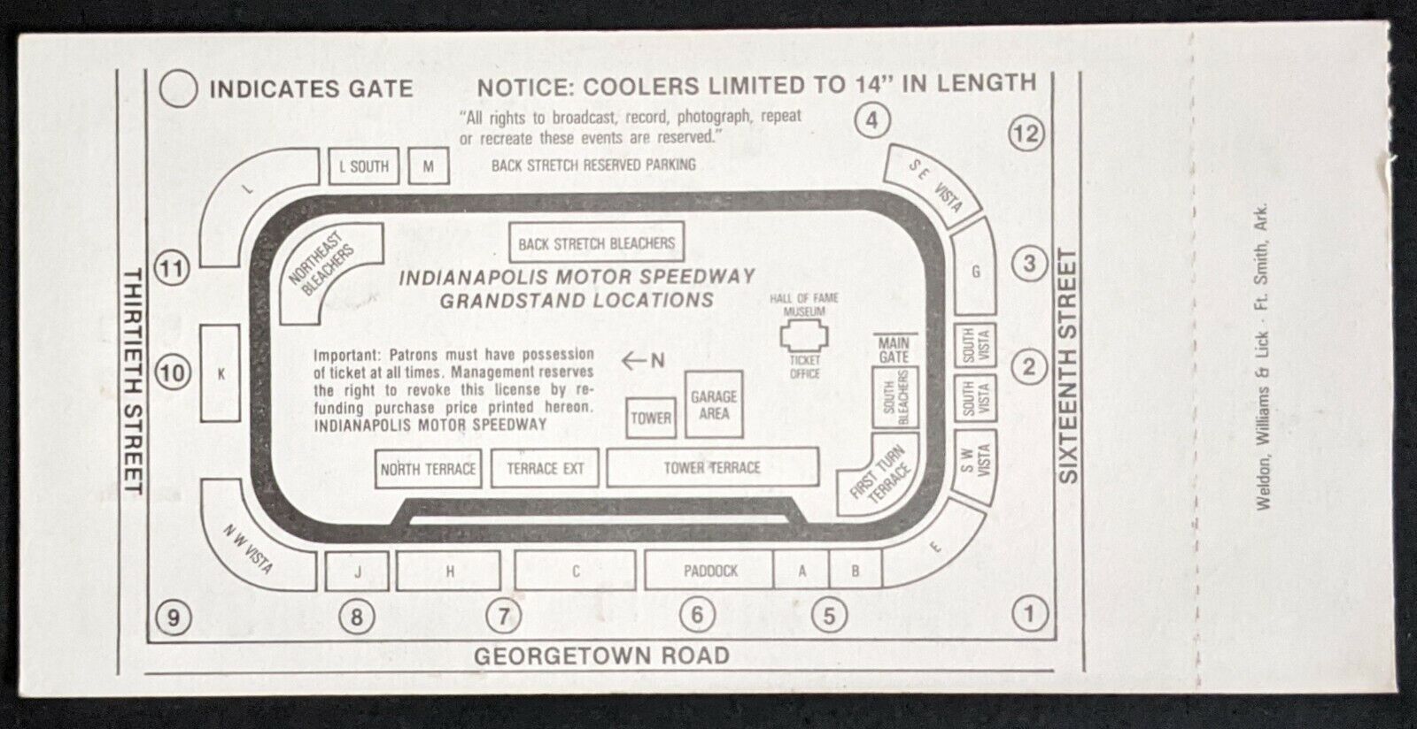 1987 Indy 500 Ticket Stub Racing Al Unser Bobby Rahal 71st Indianapolis Race