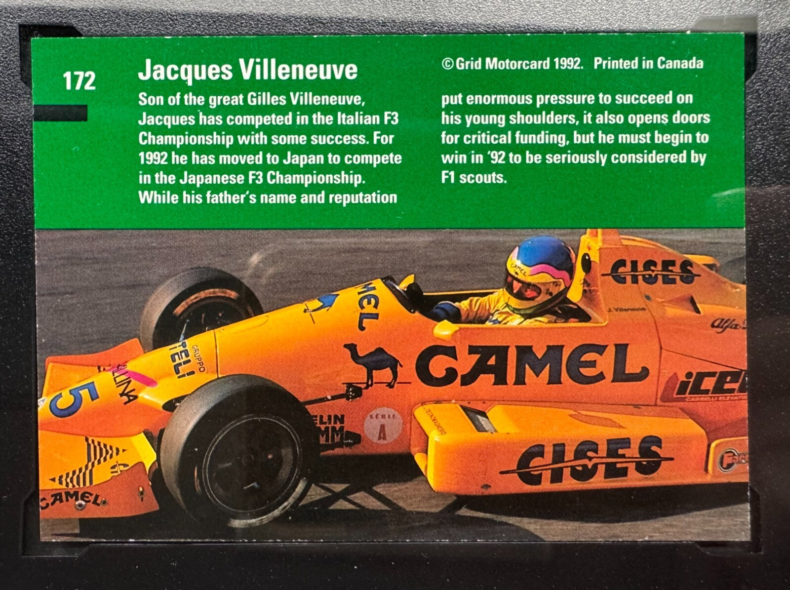 - 1992 Grid Motorcard #172 Jacques Villeneuve KSA 9.5 NGM