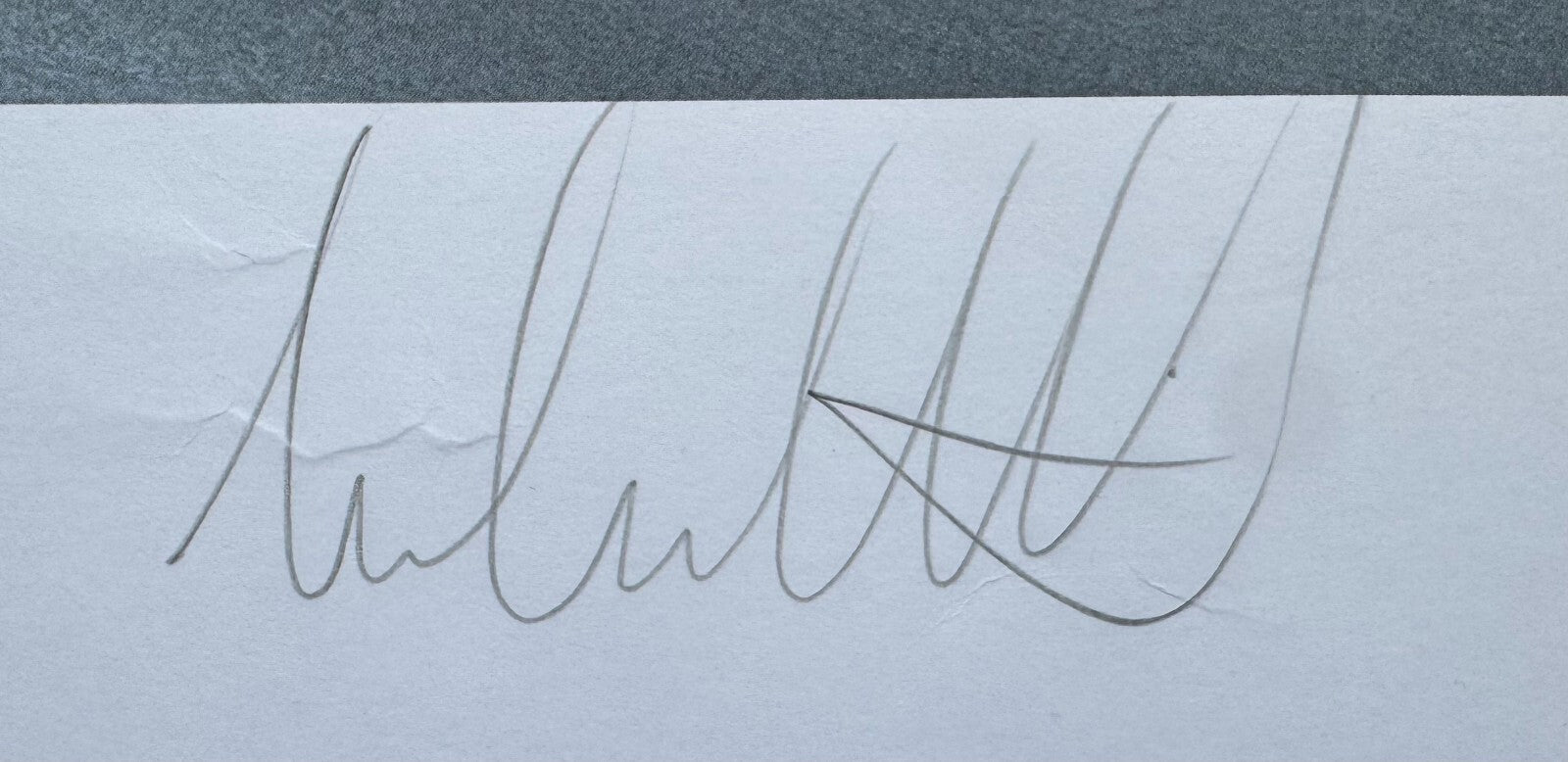 Excellent condition; minor corner and edge wear along with some faint creasing. One small spot of dark discoloration at bottom edge of image. Autographs presents well with no fading, smudging or bleeding