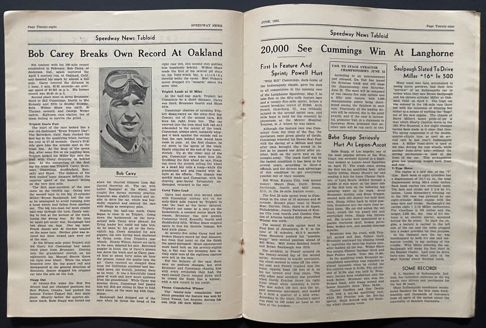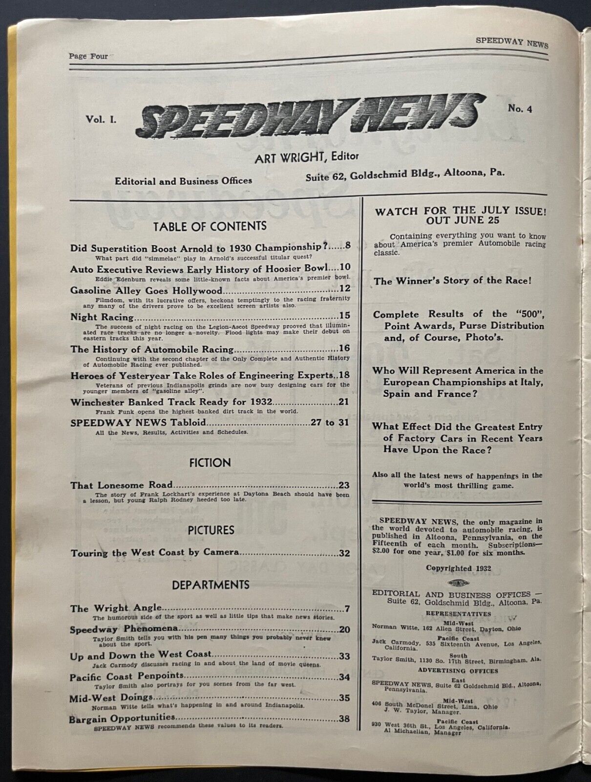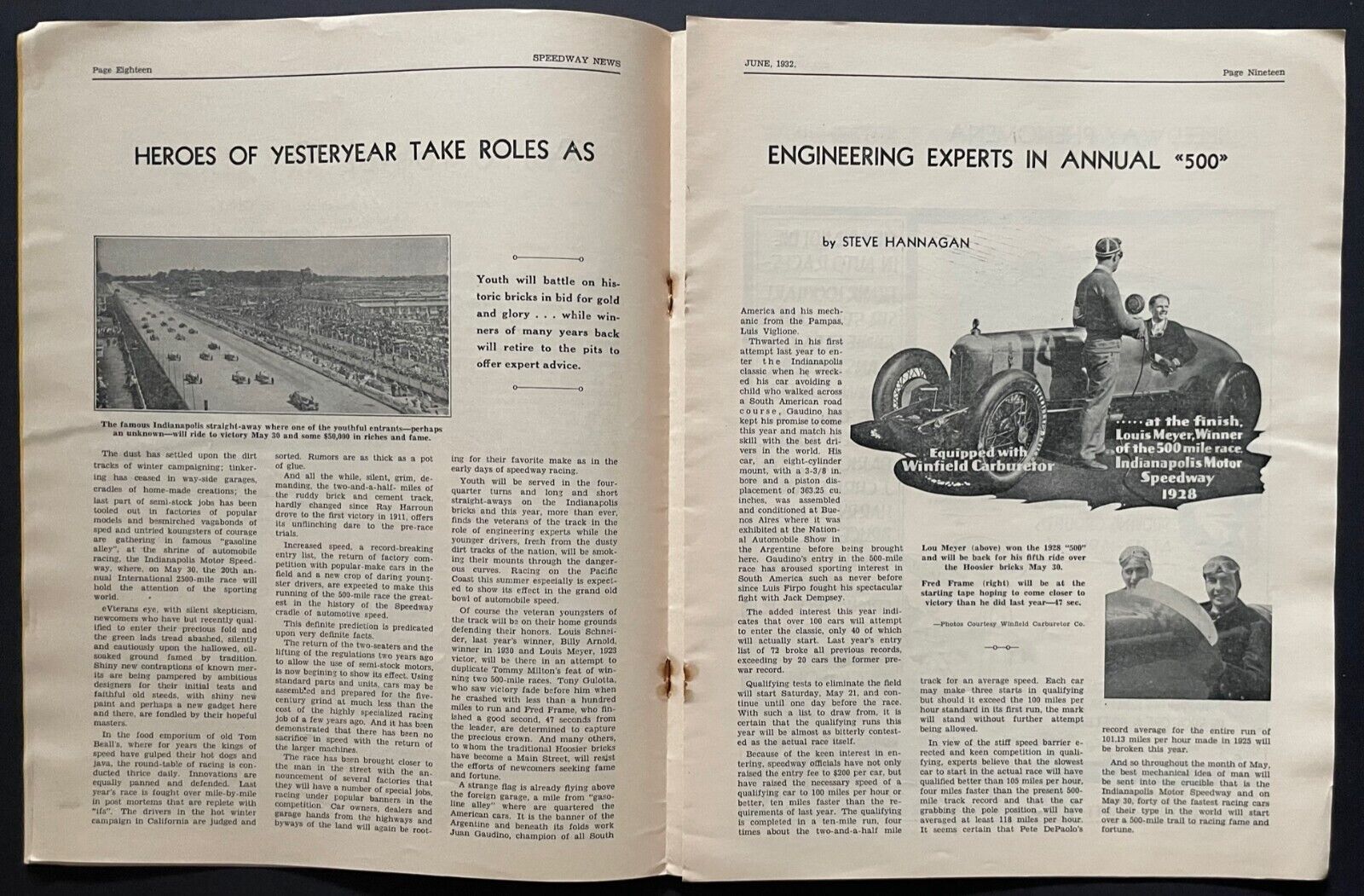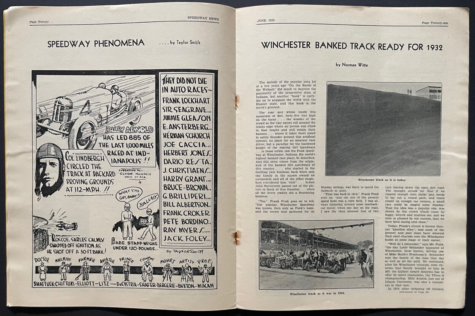 • June 1932 issue of Speedway News with a special feature on the Indy 500