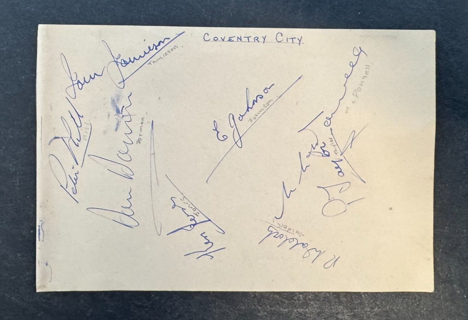 - Signed by Eric Johnson, Ian Jamieson, Peter Hill, Ken Jones Peter Taylor, Martin McDonnell, Ronnie Waldock and Don Dorman