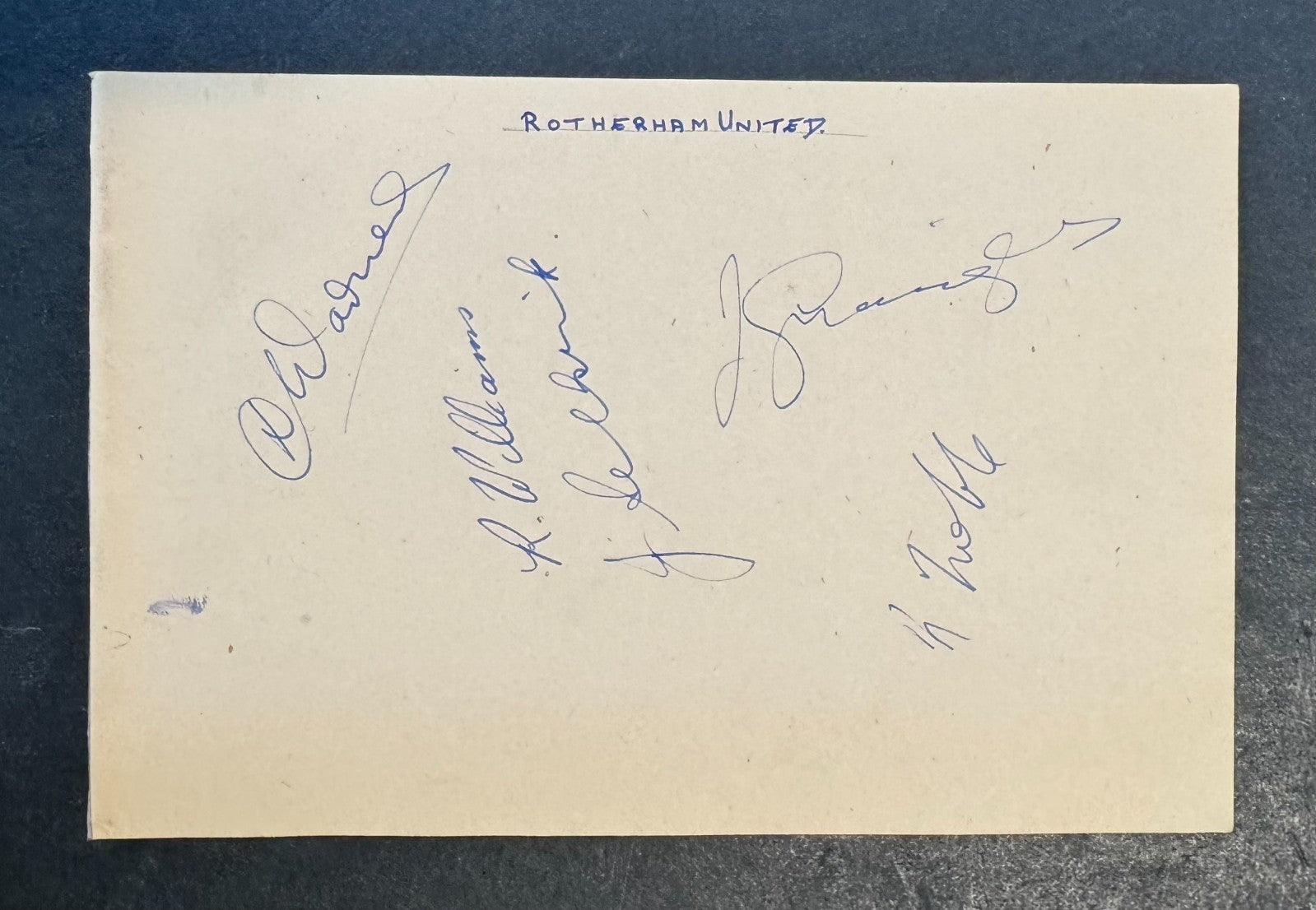 - Signed by Rotherham United players Jack Grainger, Norman Noble, Dennis Warner, Jack Selkirk and Robert Williams. On reverse signed by West Bromwich Albion players Ron Allen and Johnny Nichols