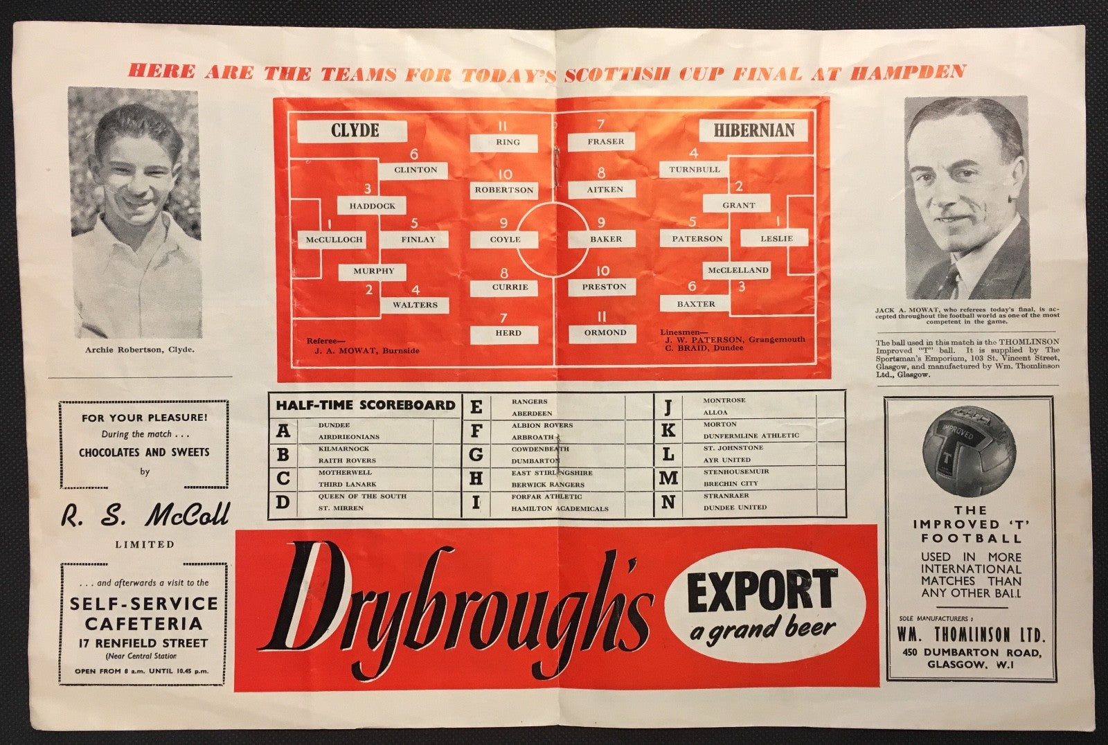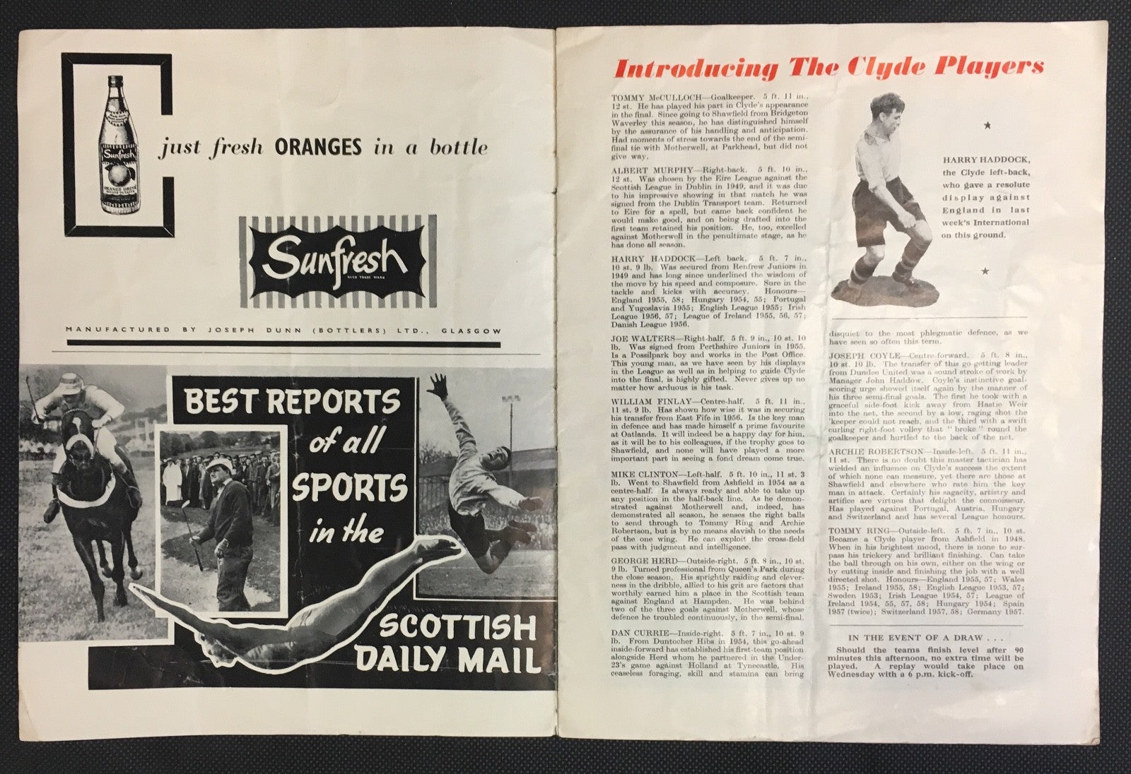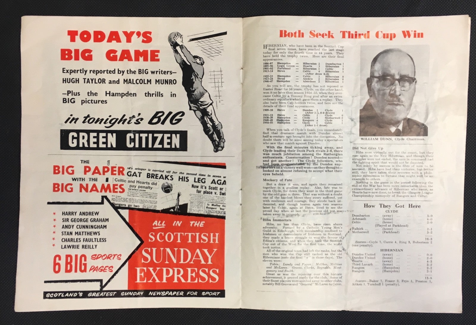 - 1958 Scottish Cup soccer program played at Hampden Park between Clyde and Hibernian