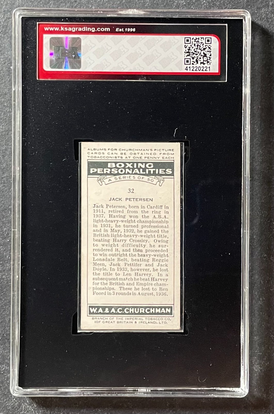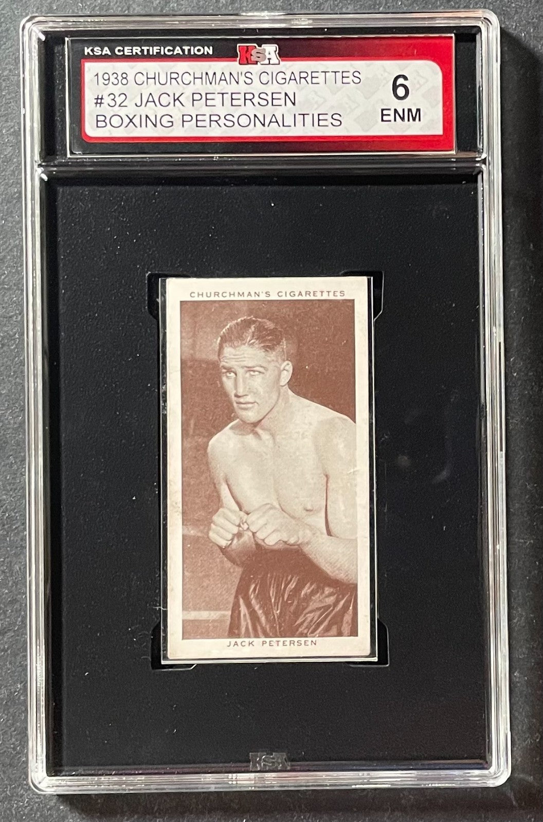 • 1938 Churchman's Cigarettes #32 Jack Petersen Boxing Personalities Card KSA 6 ENM