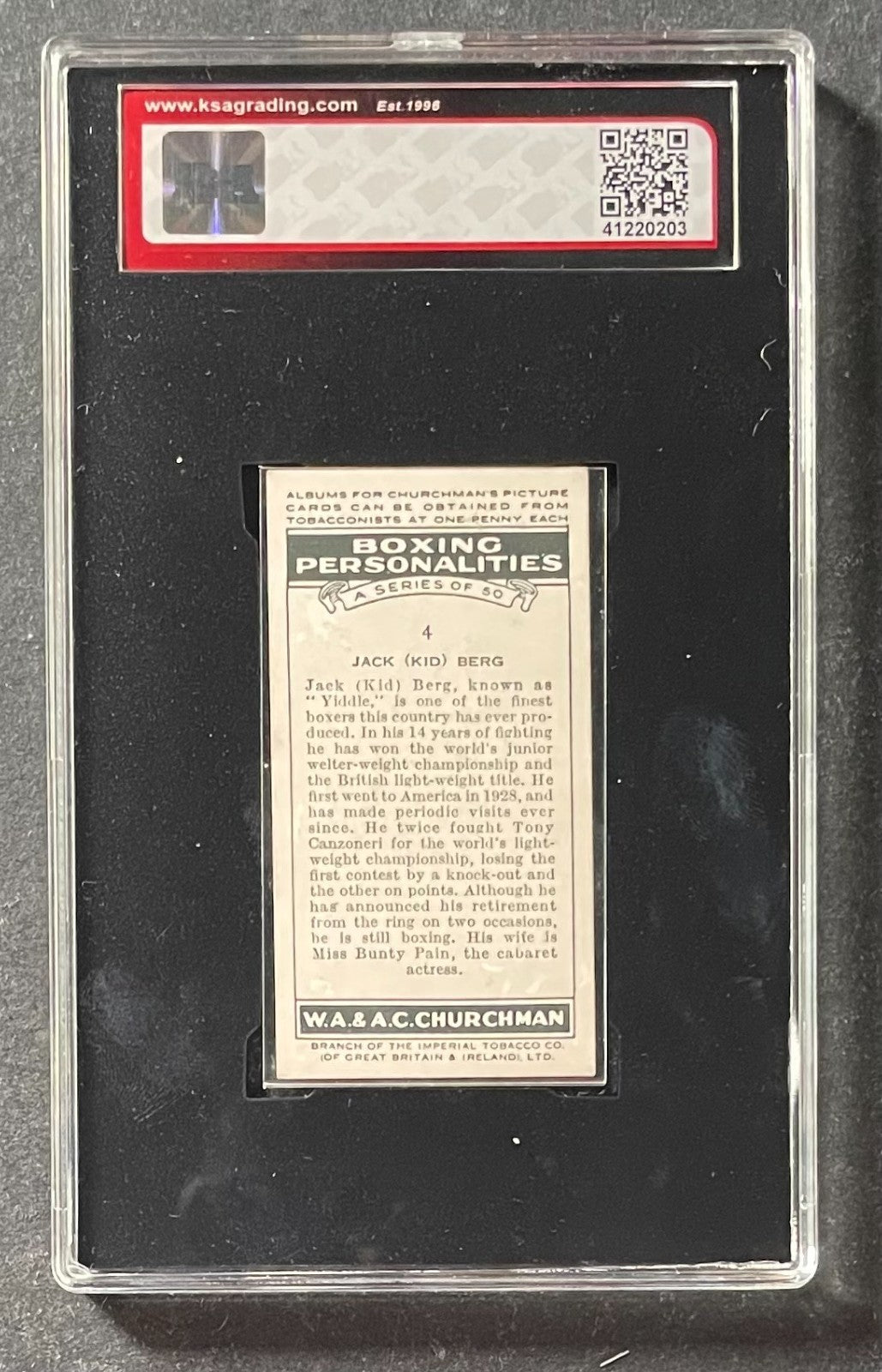 - 1938 Churchman's Cigarettes #4 Jack Berg Boxing Personalities Card KSA 5.5 EX+