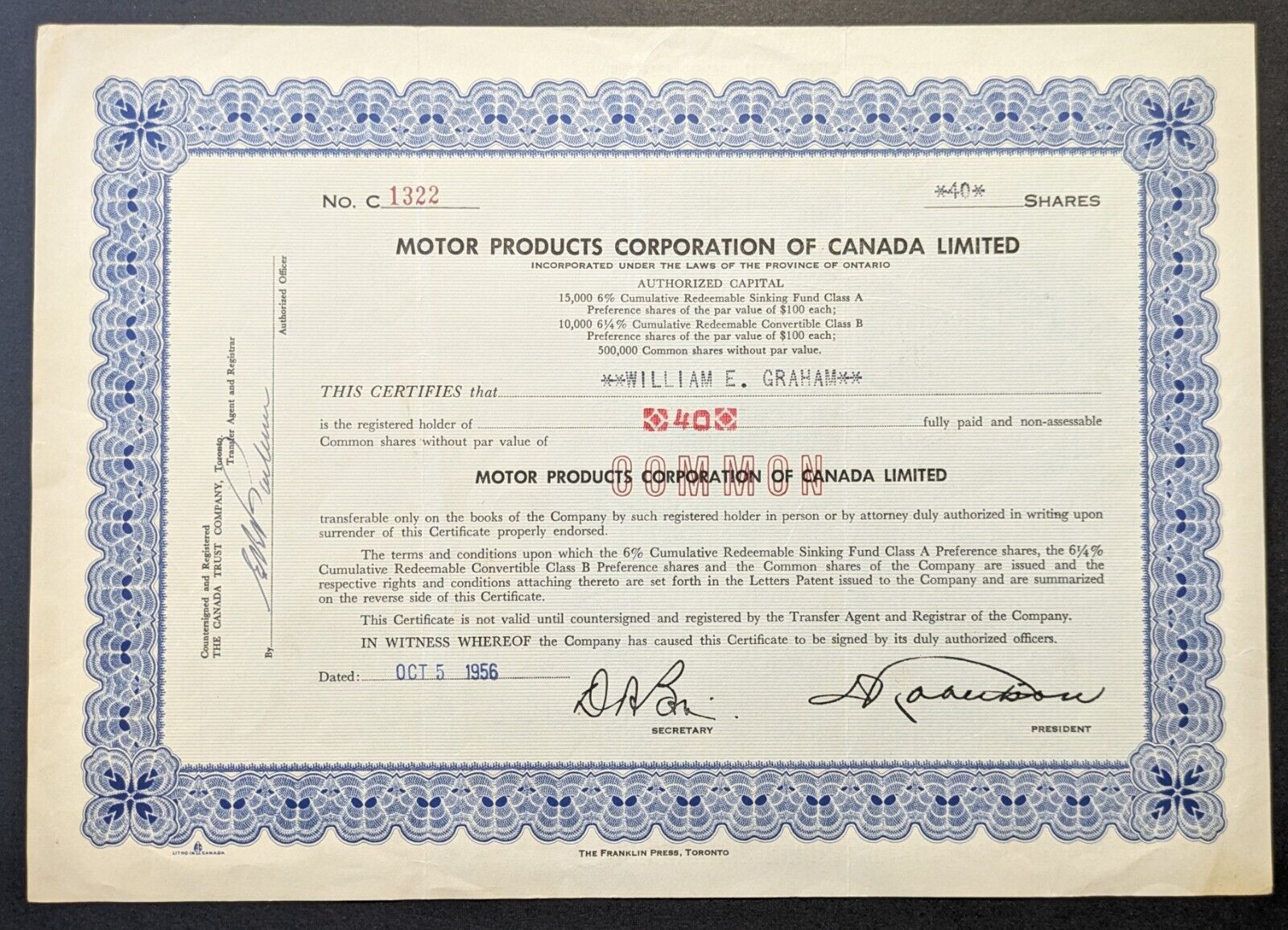 - 1956 Motor Products Corporation Of Canada Limited Share Certificate