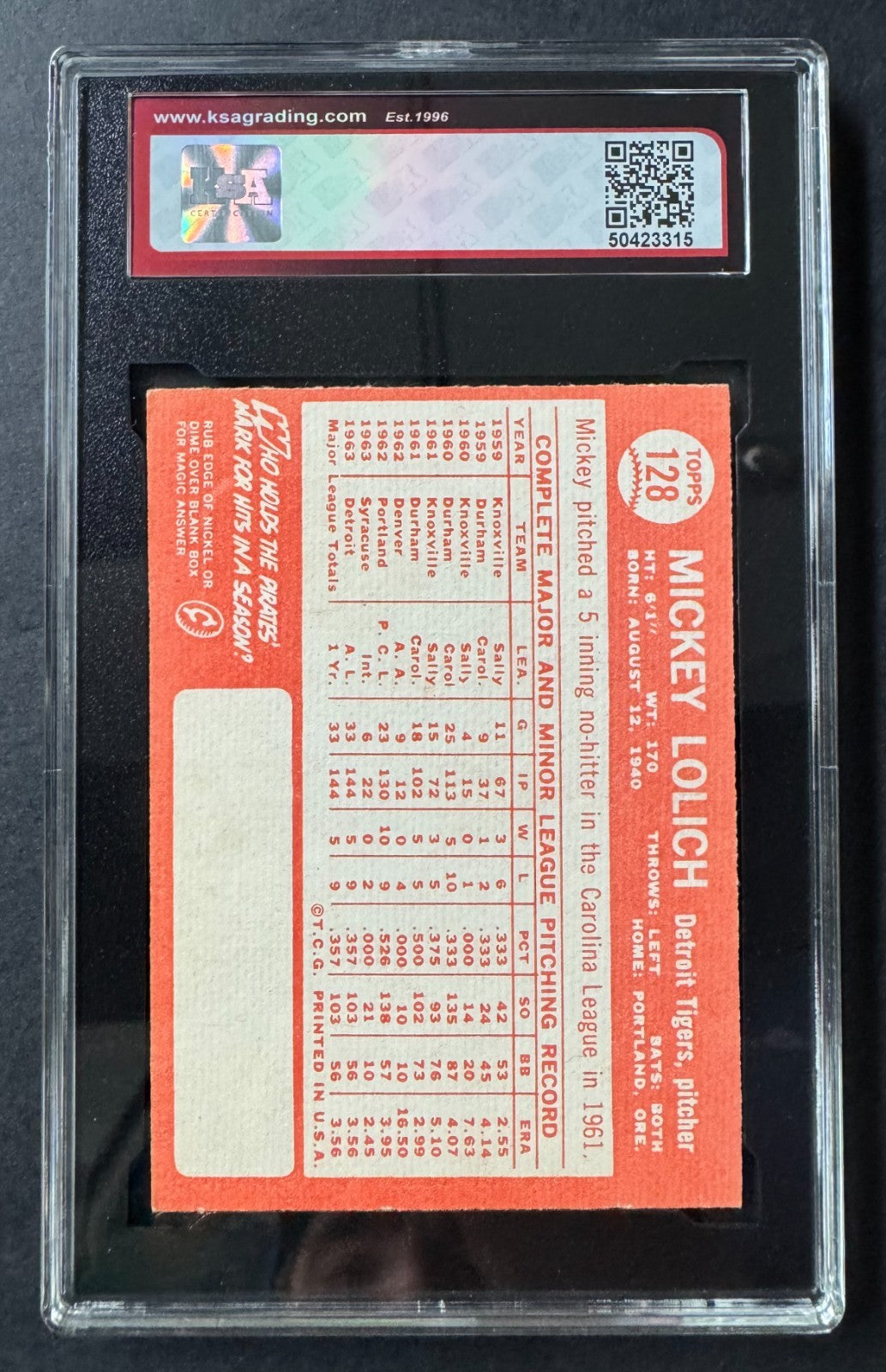 1964 Topps #128 Mickey Lolich Detroit Tigers Baseball Card KSA 5.5 EX+ MLB Vtg