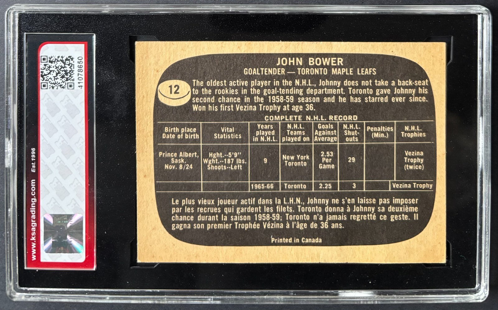 1966-67 Topps #12 Johnny John Bower Toronto Maple Leafs NHL Hockey Card KSA 3