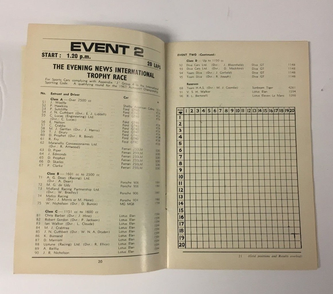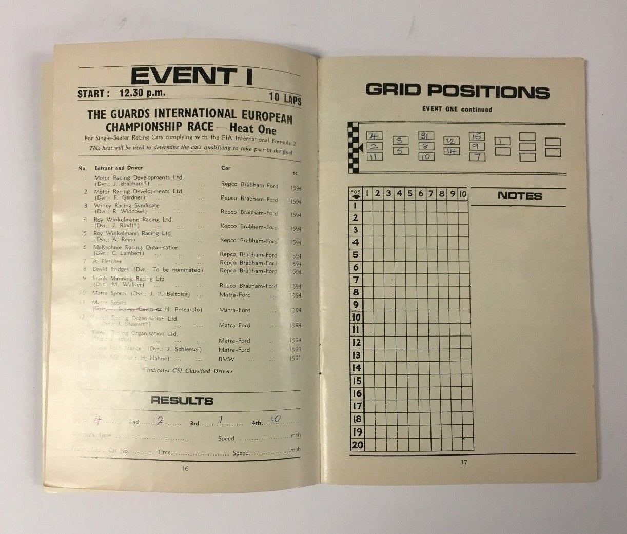 - Vintage 1967 Racing Program from Brands Hatch England Formula 2 European Championship