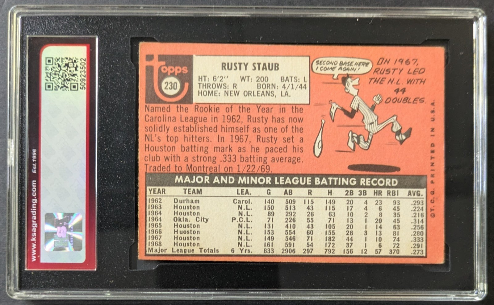 1969 Topps #230 Rusty Staub 1st Base Montreal Expos Baseball Card KSA 6 ENM MLB