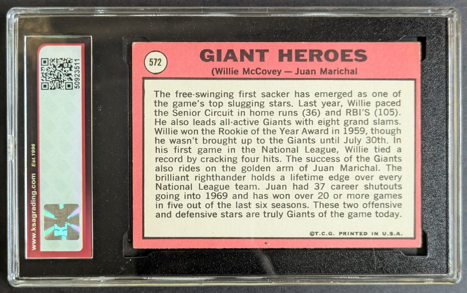 - 1969 Topps #572 San Francisco Giants Heroes Willie McCovey/Juan Marichal Baseball Card