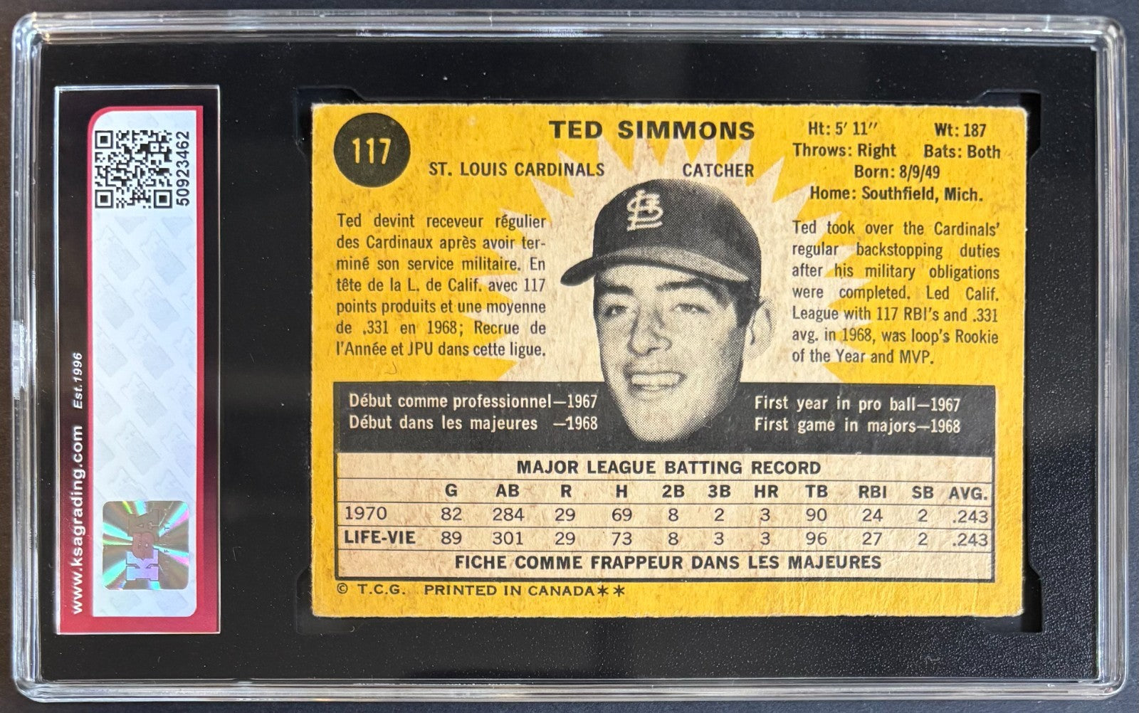 - 1971 O-PEE-CHEE (OPC) #117 Ted Simmons vintage baseball card