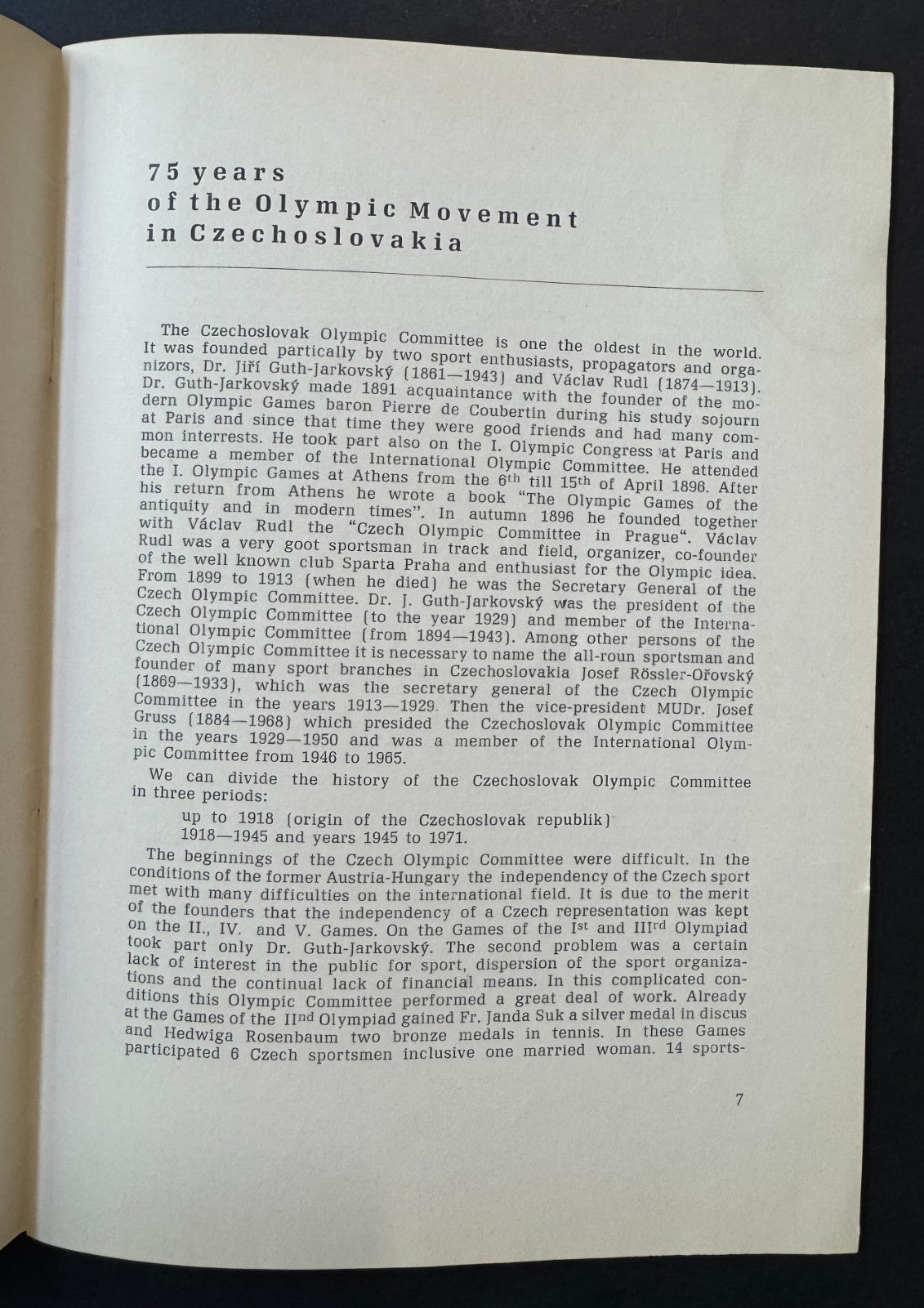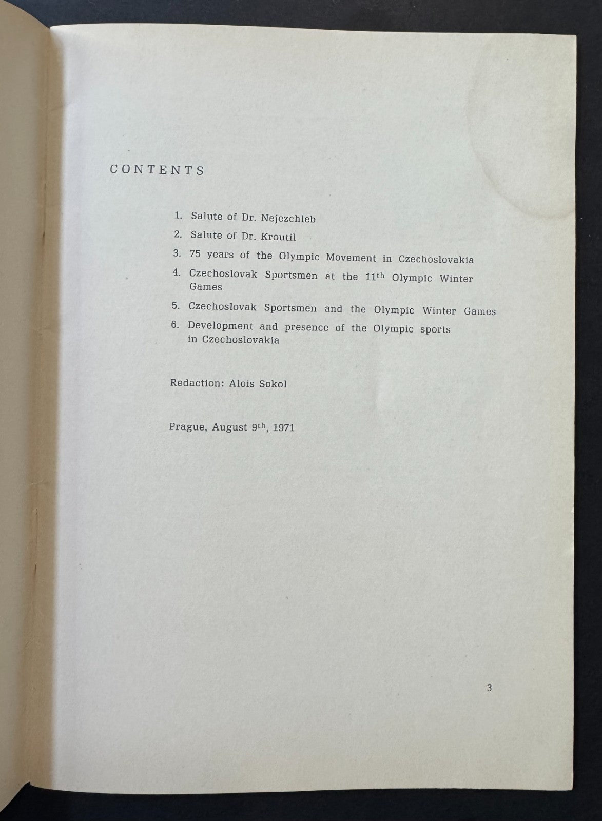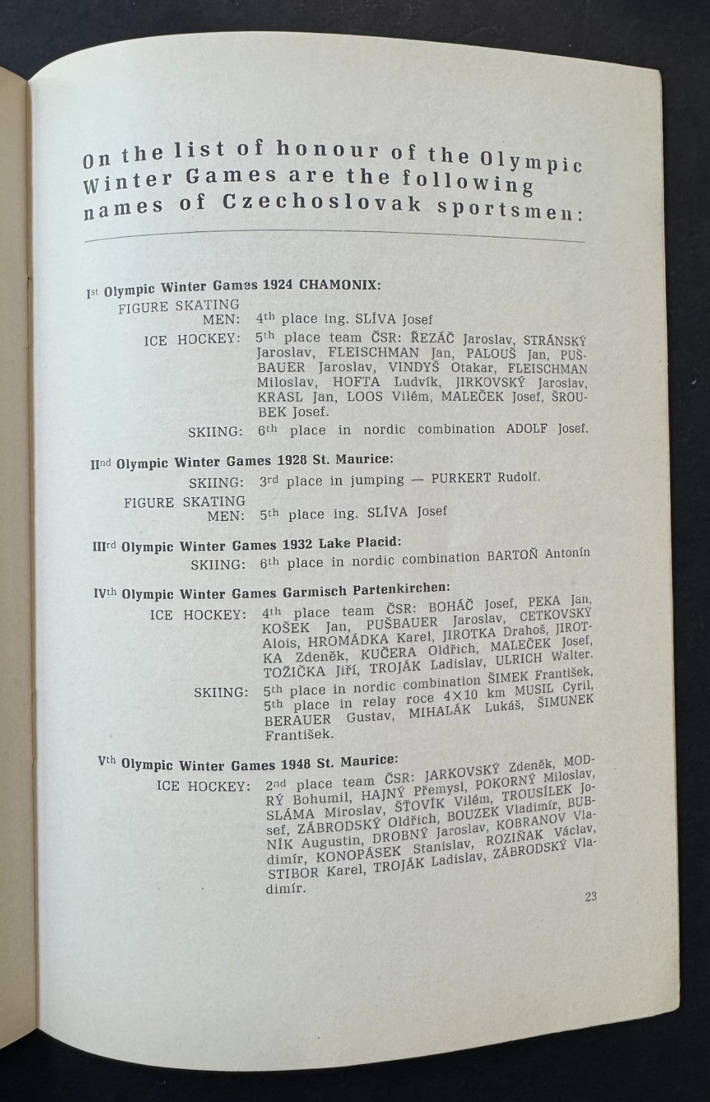 - Guide issued by Czechoslovokia Olympic team profiling current Olympic team and results in prior games